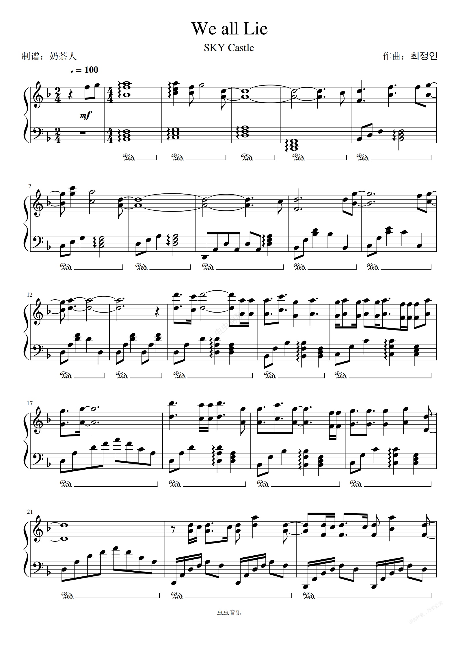 钢琴谱:《We all Lie》韩剧天空之城主题曲 好听
