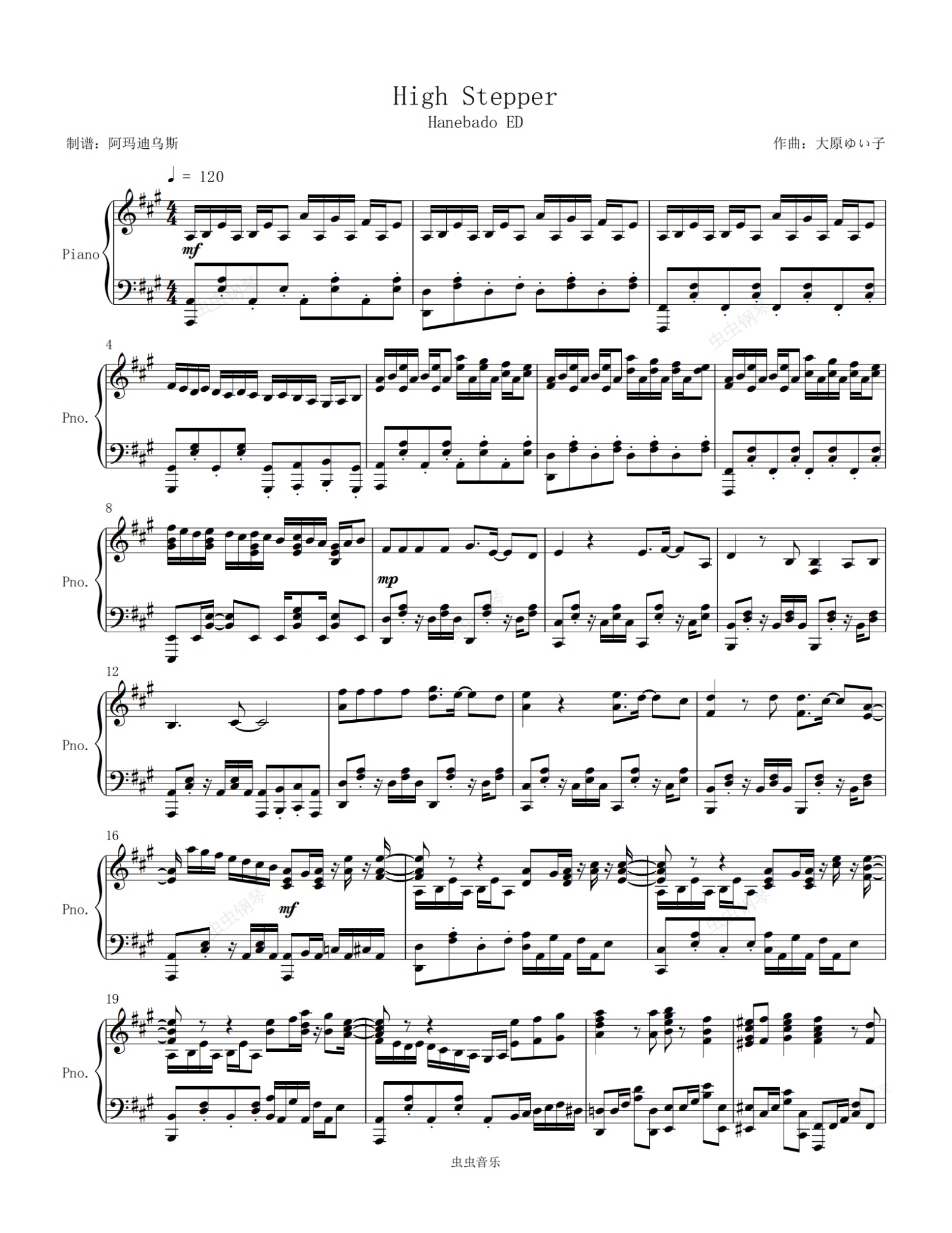 钢琴谱:轻羽飞扬 ED < High Stepper > ハイステッパー 原调高还原完整版本