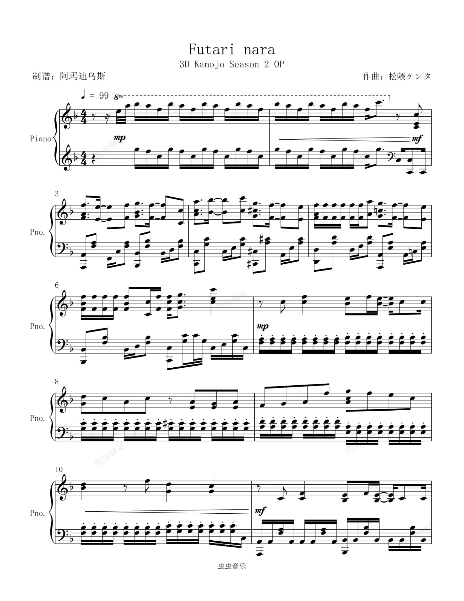 钢琴谱:三次元女友 OP < 二人なら > ( 两人的话 ) 原调高还原完整版本