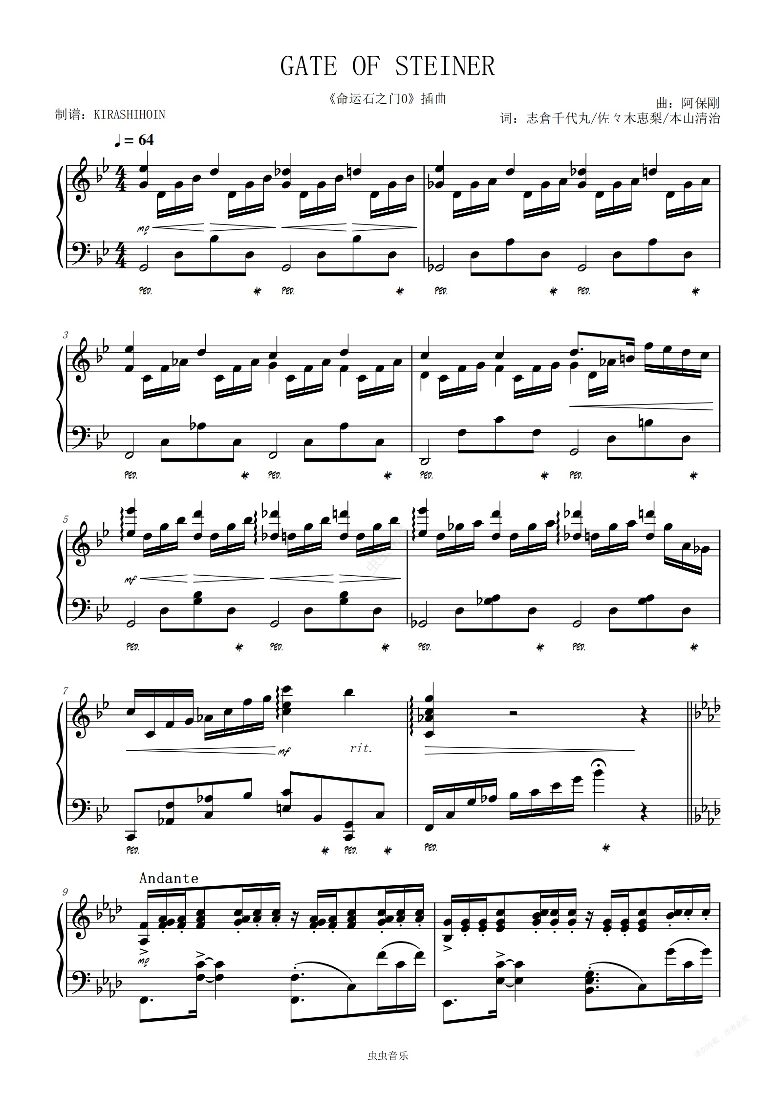 钢琴谱:GATE OF STEINER(《命运石之门0》插曲)