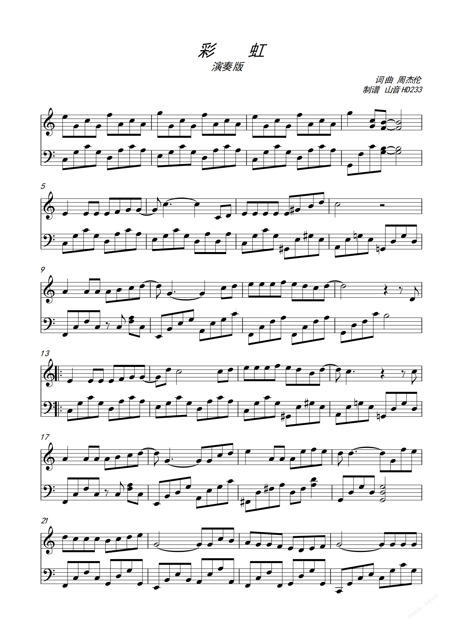 钢琴谱:周杰伦 彩虹 演奏版 C调