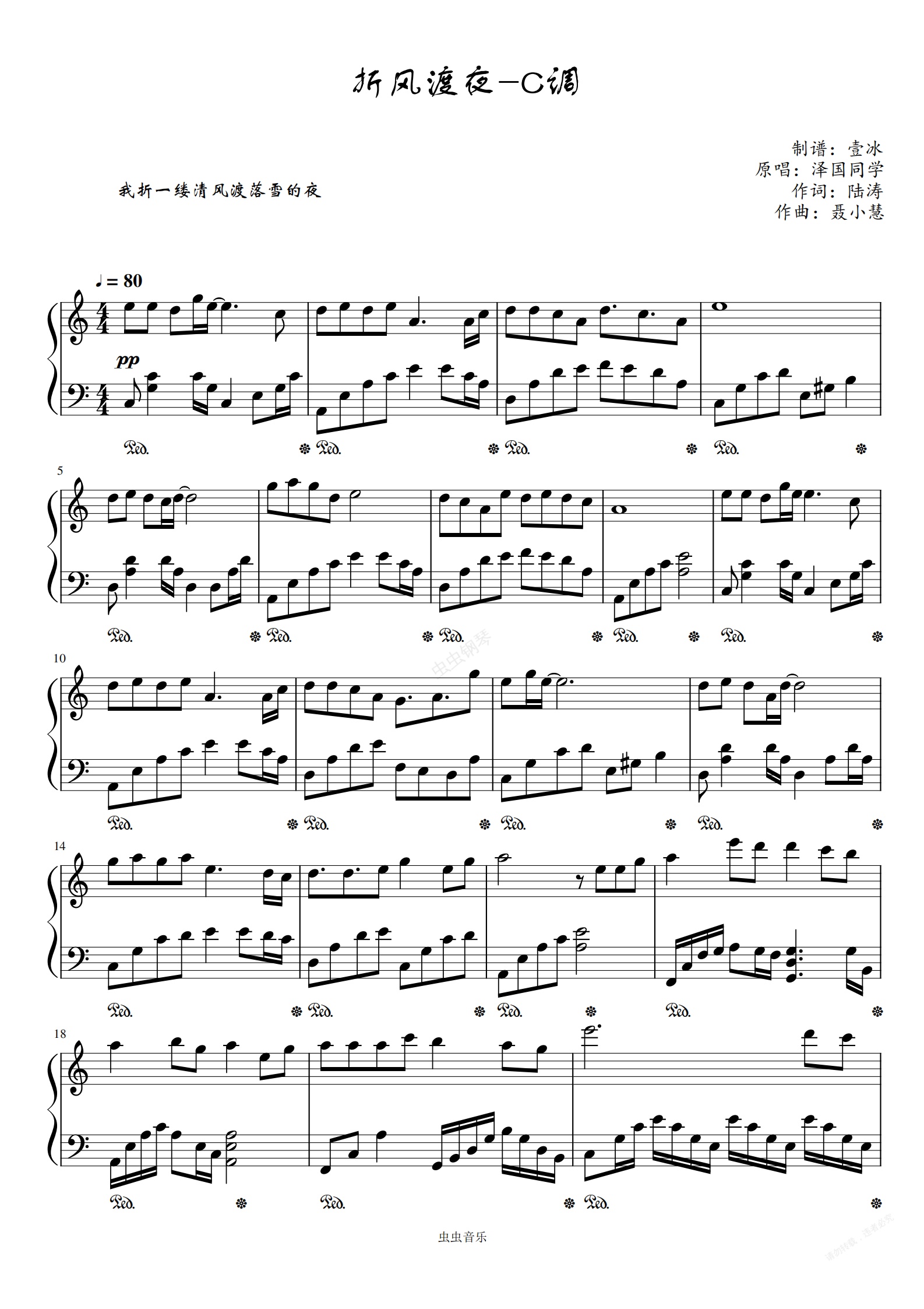 钢琴谱:折风渡夜-C调简单易上手