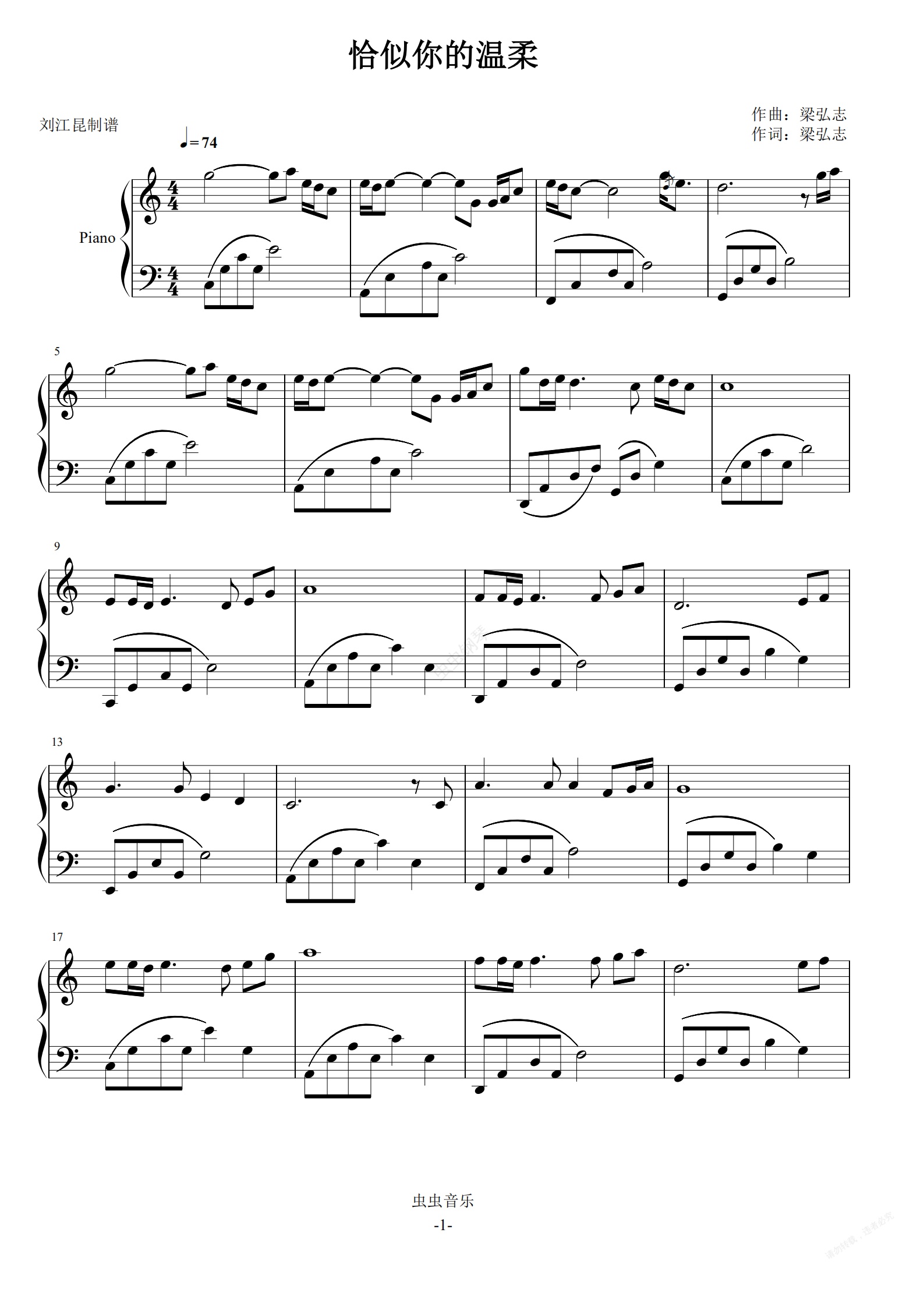 钢琴谱:恰似你的温柔(成人钢琴教学版)