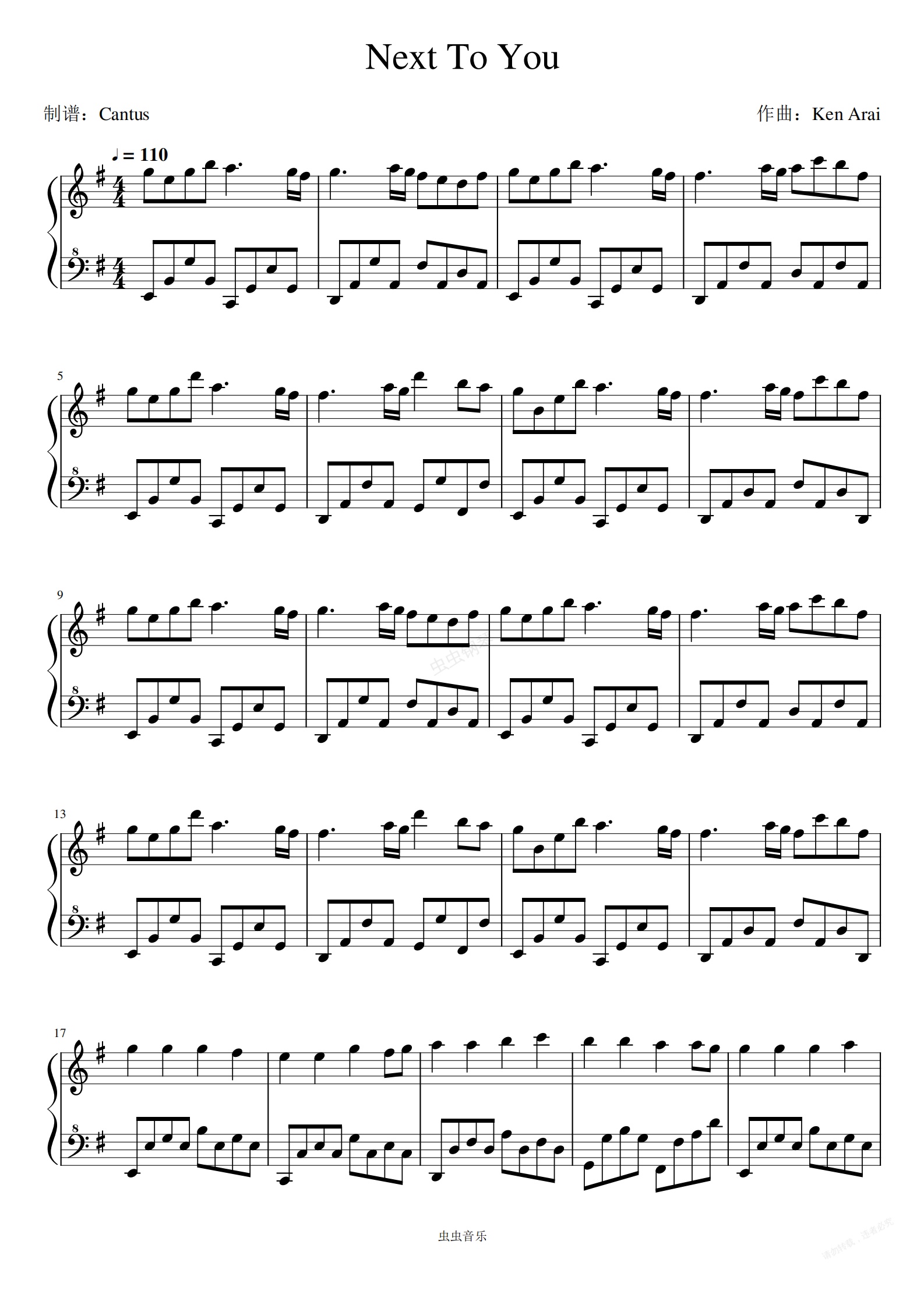 钢琴谱:NEXT TO YOU/在你身边-寄生兽