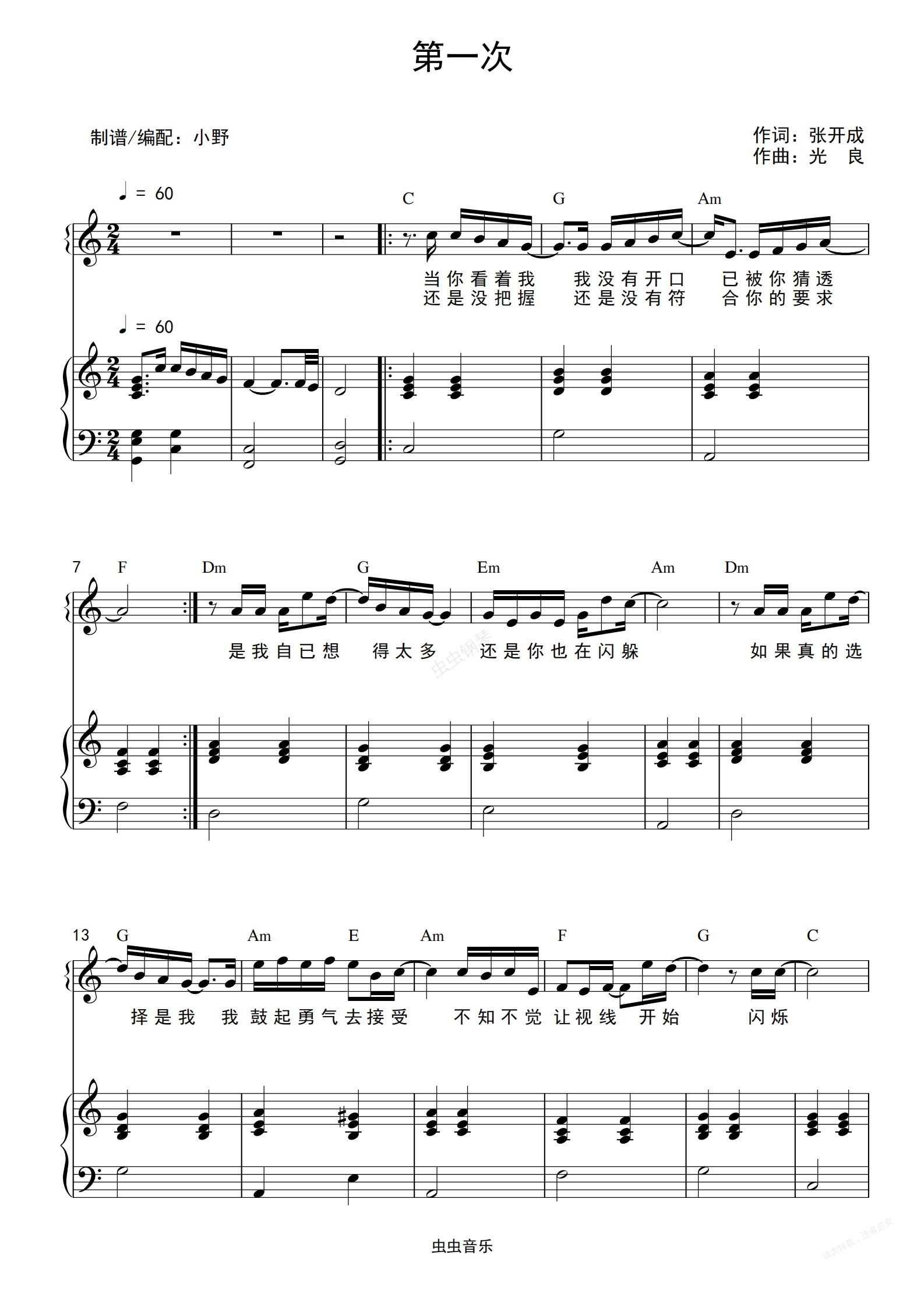 钢琴谱:第一次(和弦弹唱版)
