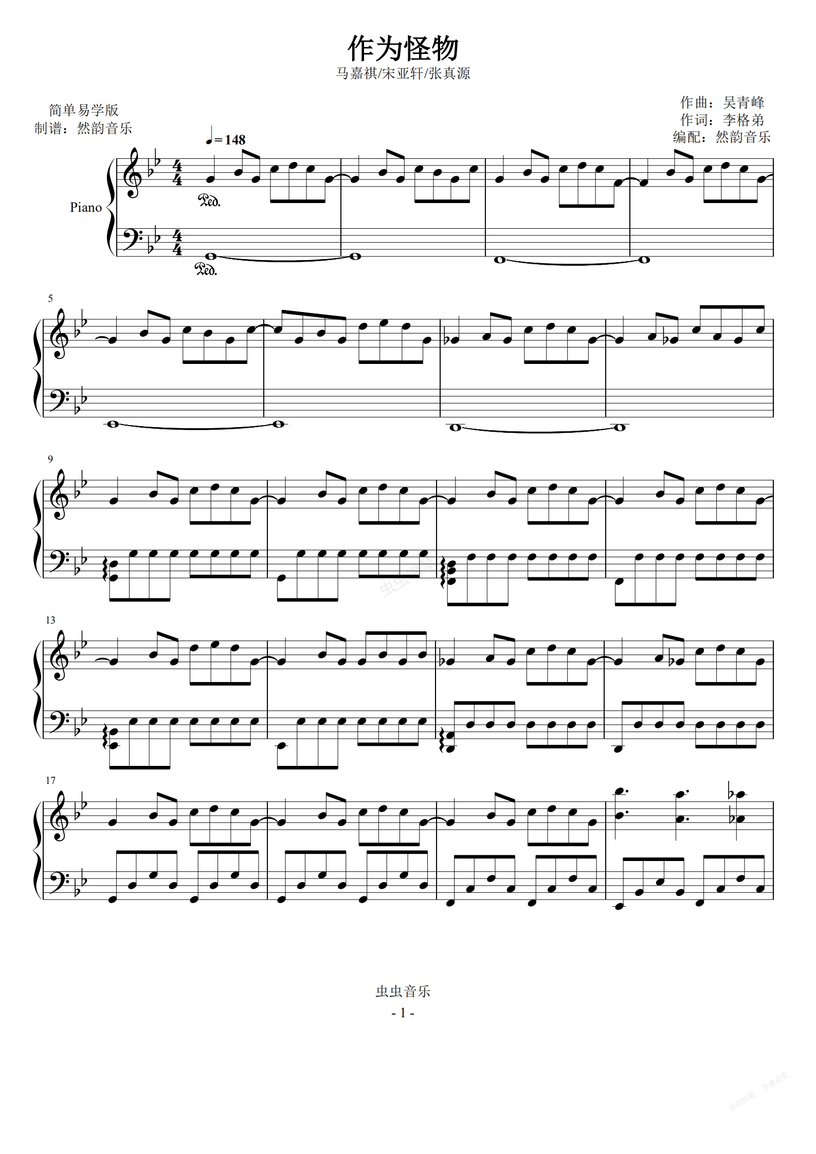 钢琴谱:【简单版】作为怪物-马嘉祺/宋亚轩/张真源 TNT时代少年团公演