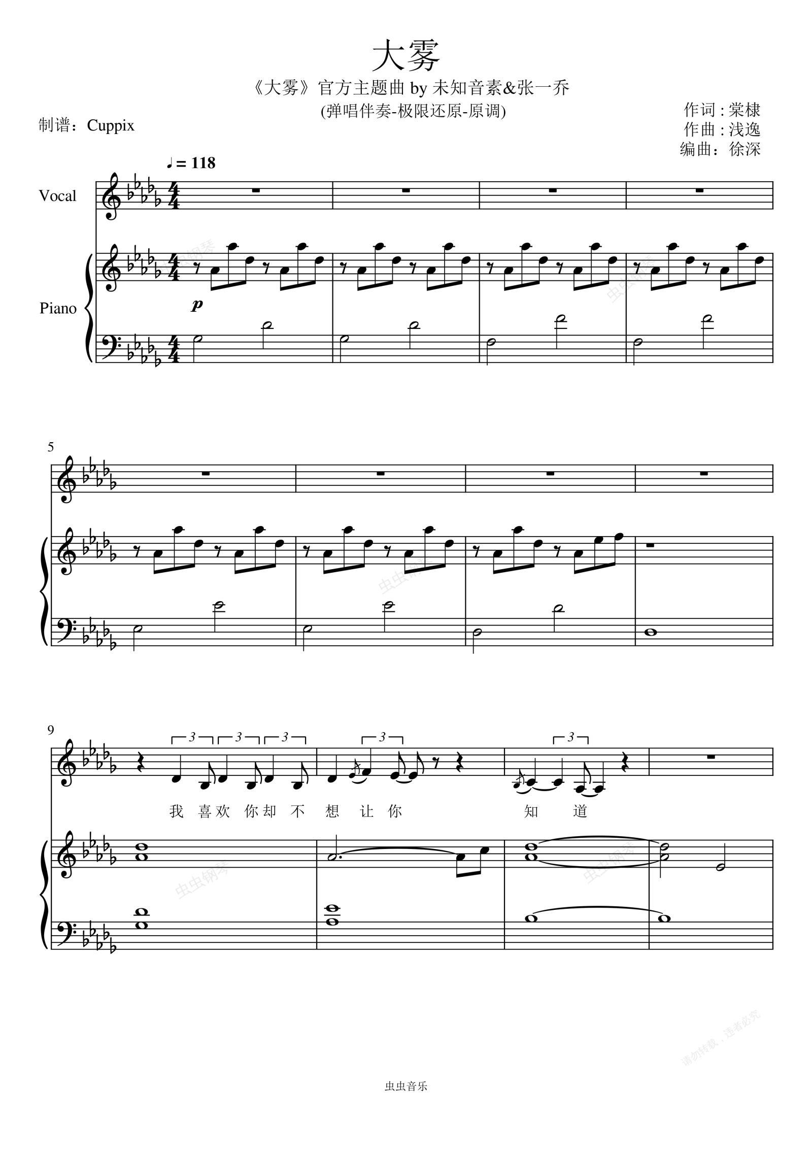 《大雾》弹唱伴奏附词-极限还原-原调版(未知音素,张一乔)