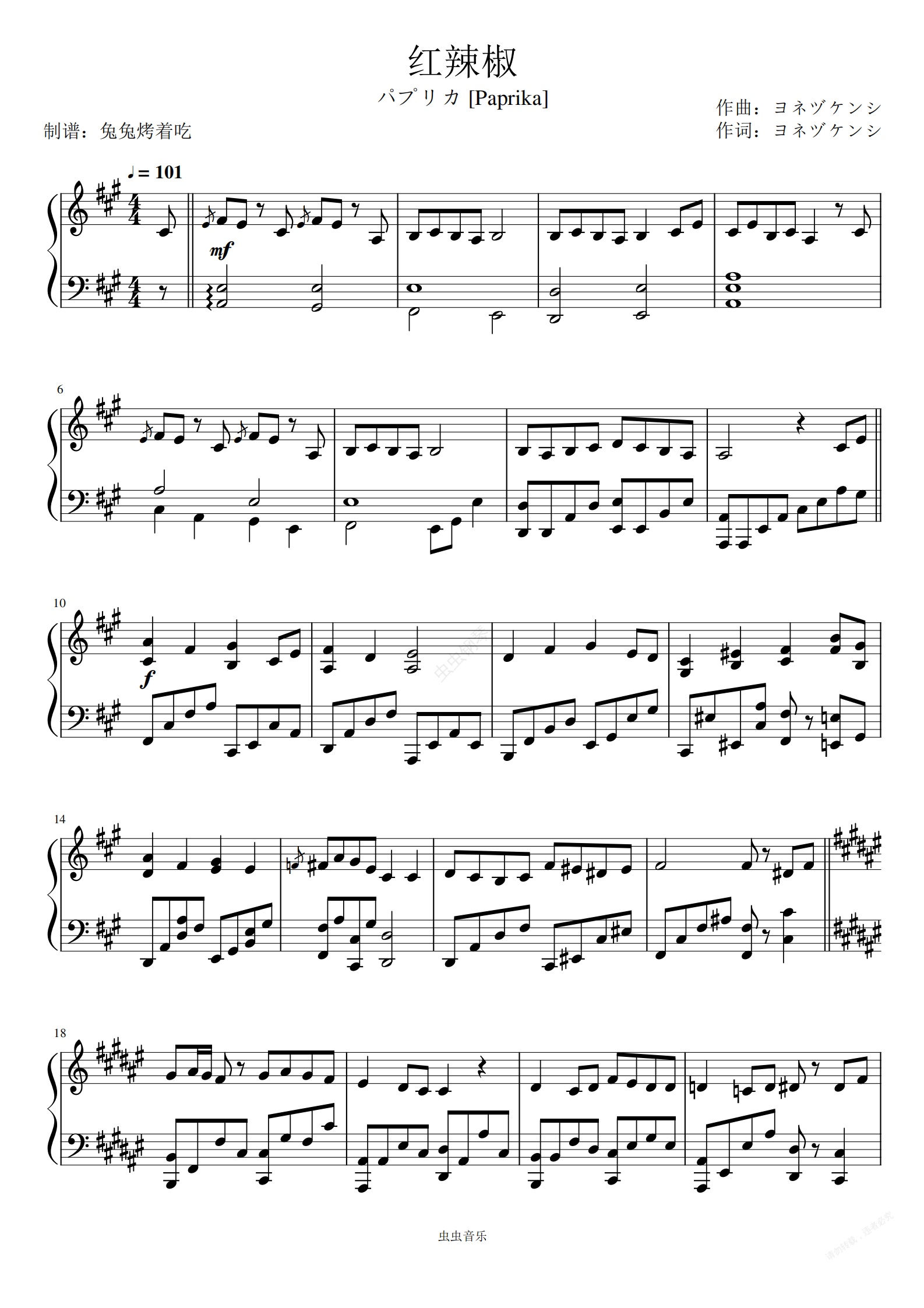 钢琴谱:《红辣椒》米津玄师(パプリカ)