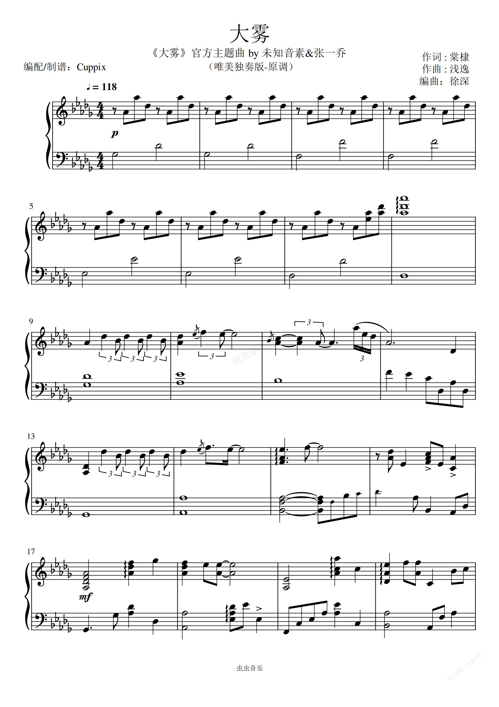 《大雾》Cuppix改编-唯美独奏版-原调(未知音素,张一乔)