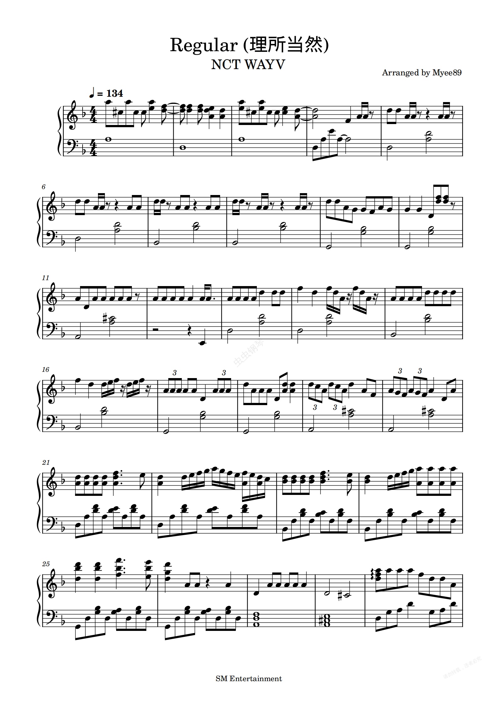 钢琴谱:NCT 127//威神V - Regular (理所当然) 钢琴谱