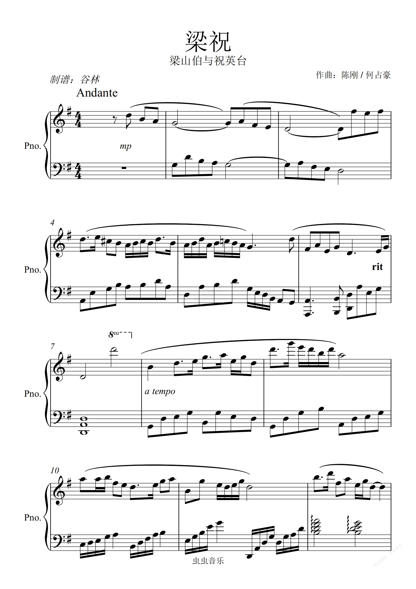 钢琴谱:《梁祝》经典原版
