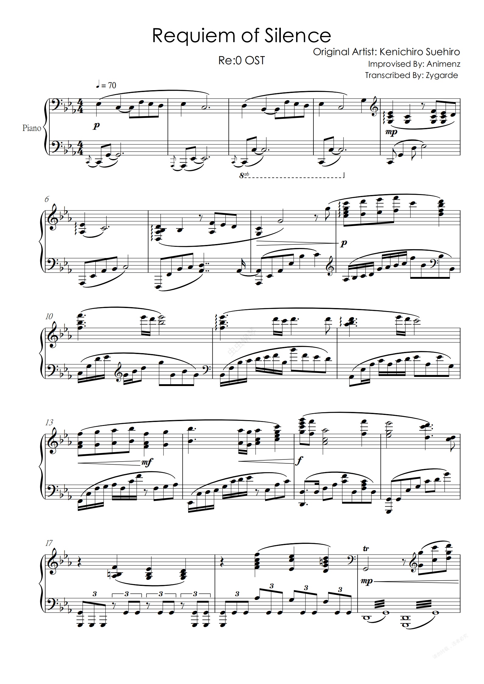 钢琴谱:Animenz - RE:0 OST ~ 蕾姆挽歌 (2021 2/6即兴版)