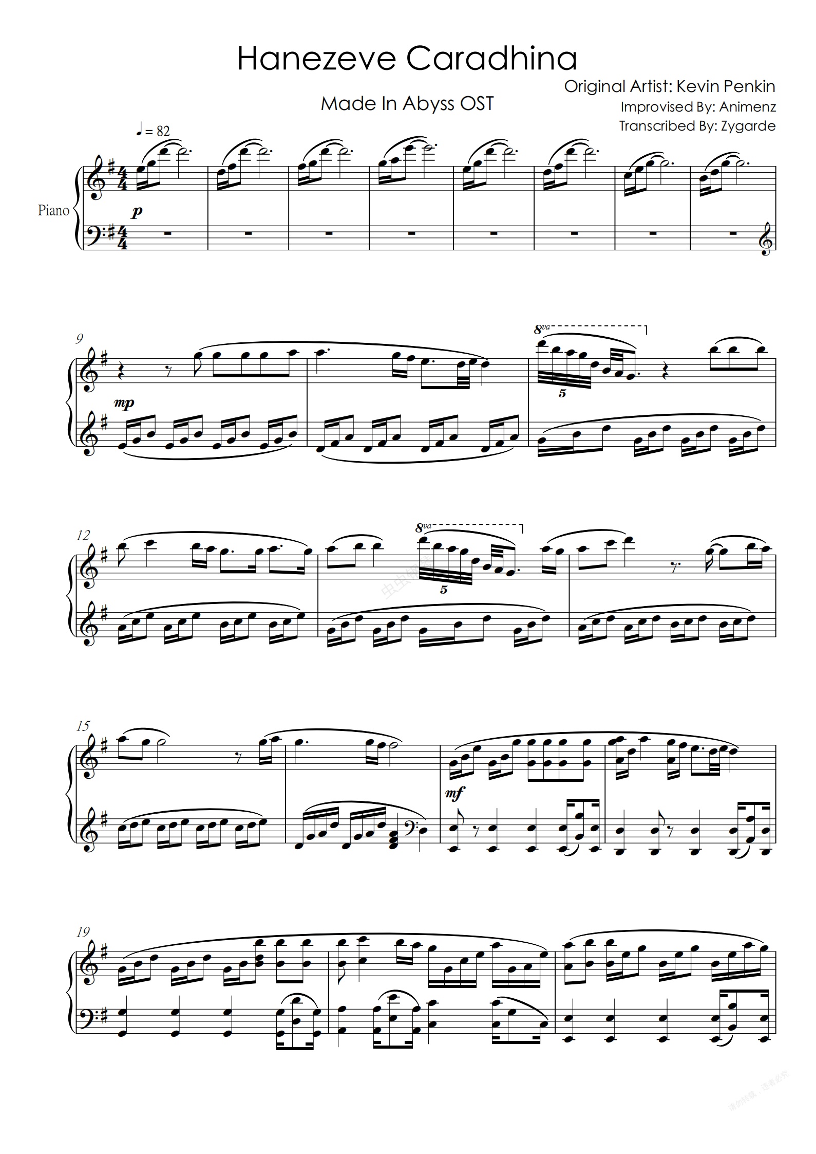 钢琴谱:Animenz - 来自深渊 OST ~ 日出神曲 (2021 2/6即兴版)