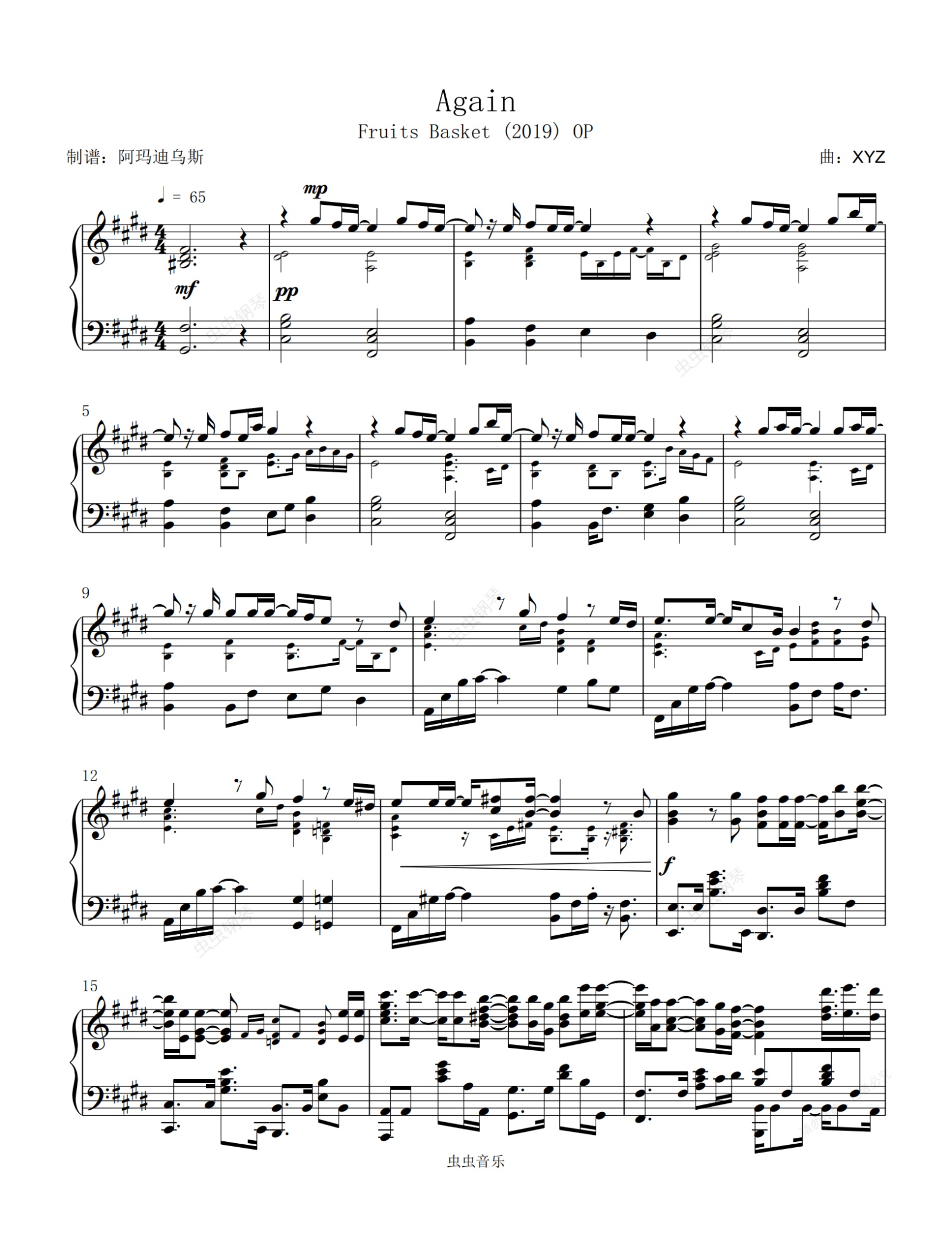 钢琴谱:水果篮子 OP < Again > 原调高还原完整版本