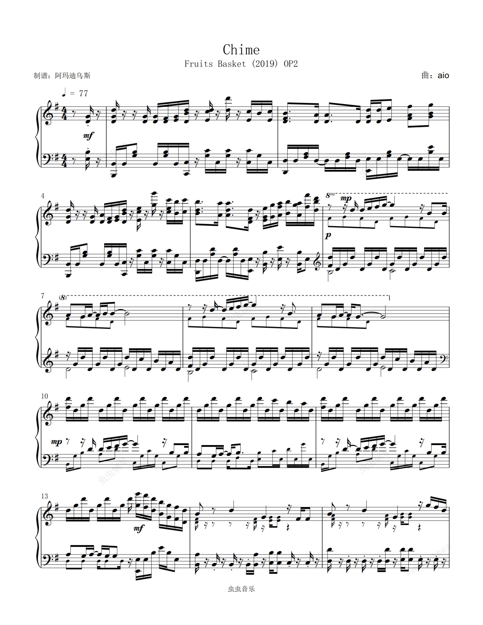 钢琴谱:水果篮子 OP < Chime > 原调高还原完整版本