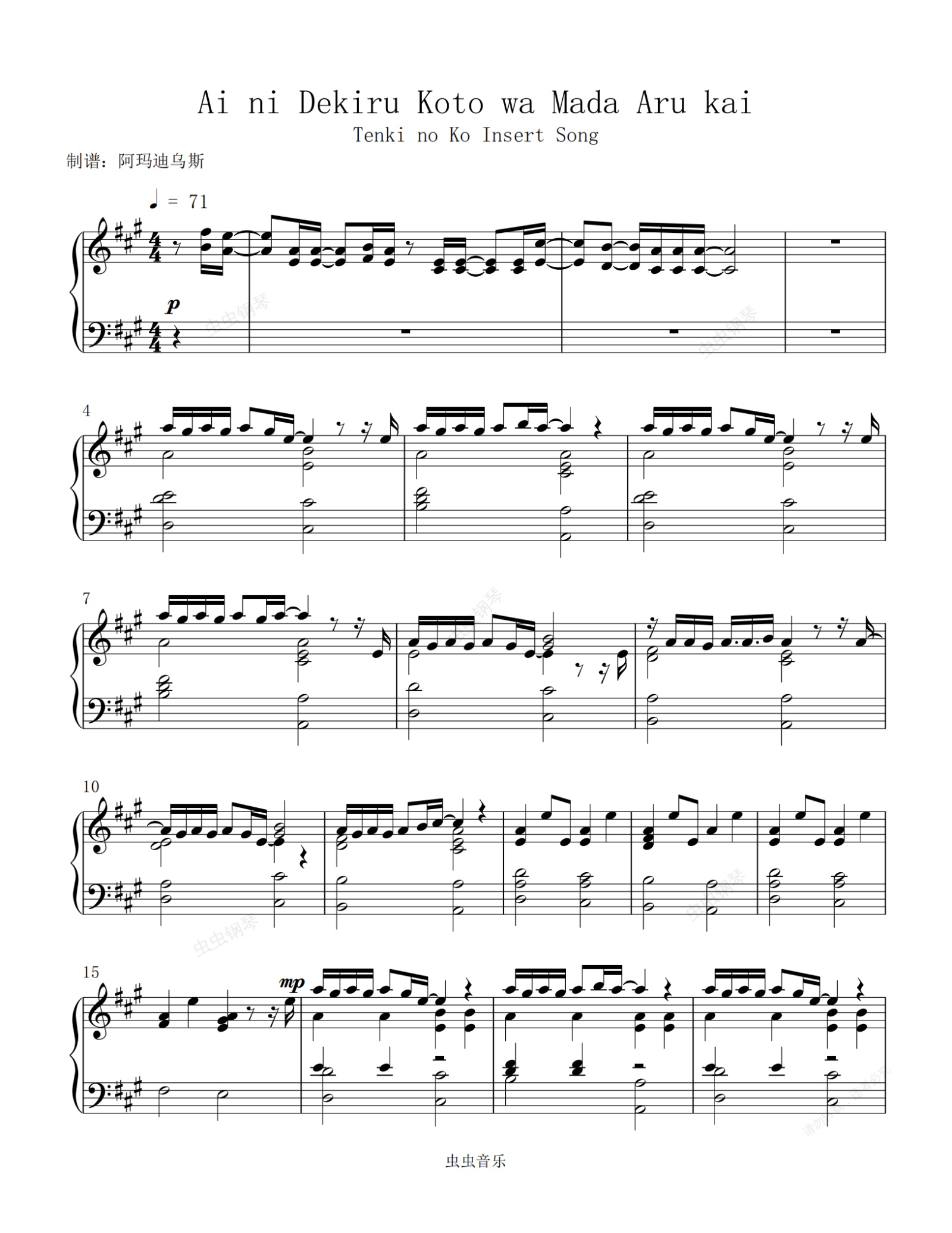 钢琴谱:天气之子 OP < Is There Still Anything That Love Can Do > ( 爱能做到的还有什么 ) 原调高还原完整版本