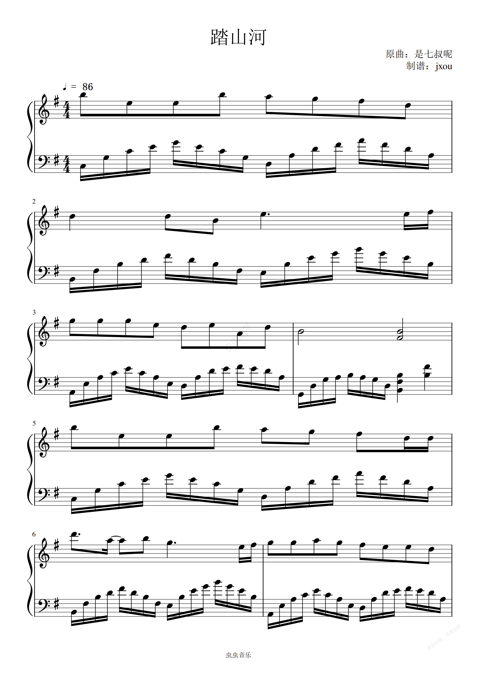 钢琴谱:踏山河 原调高燃还原版