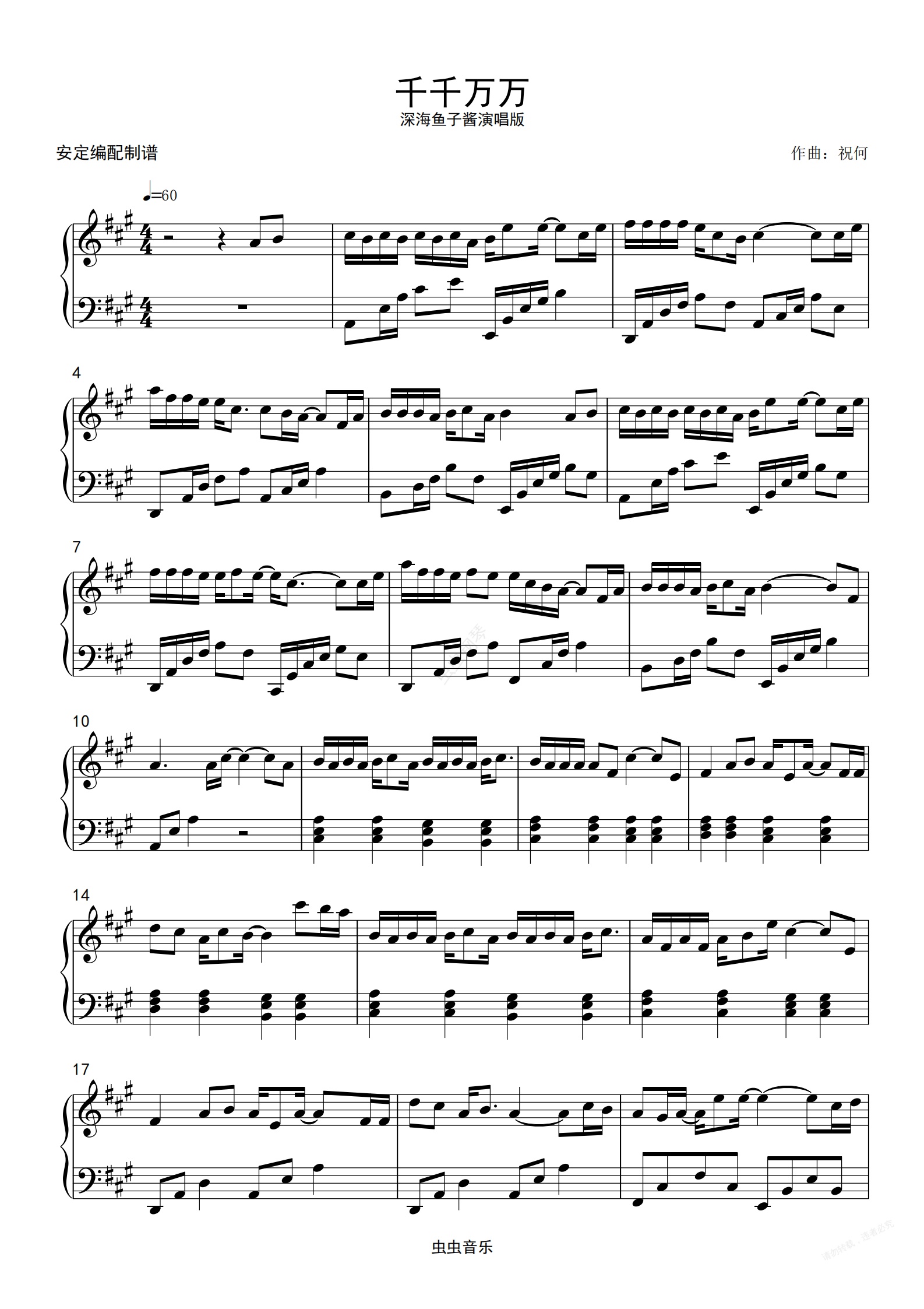 钢琴谱:千千万万-深海鱼子酱演唱版原版听记