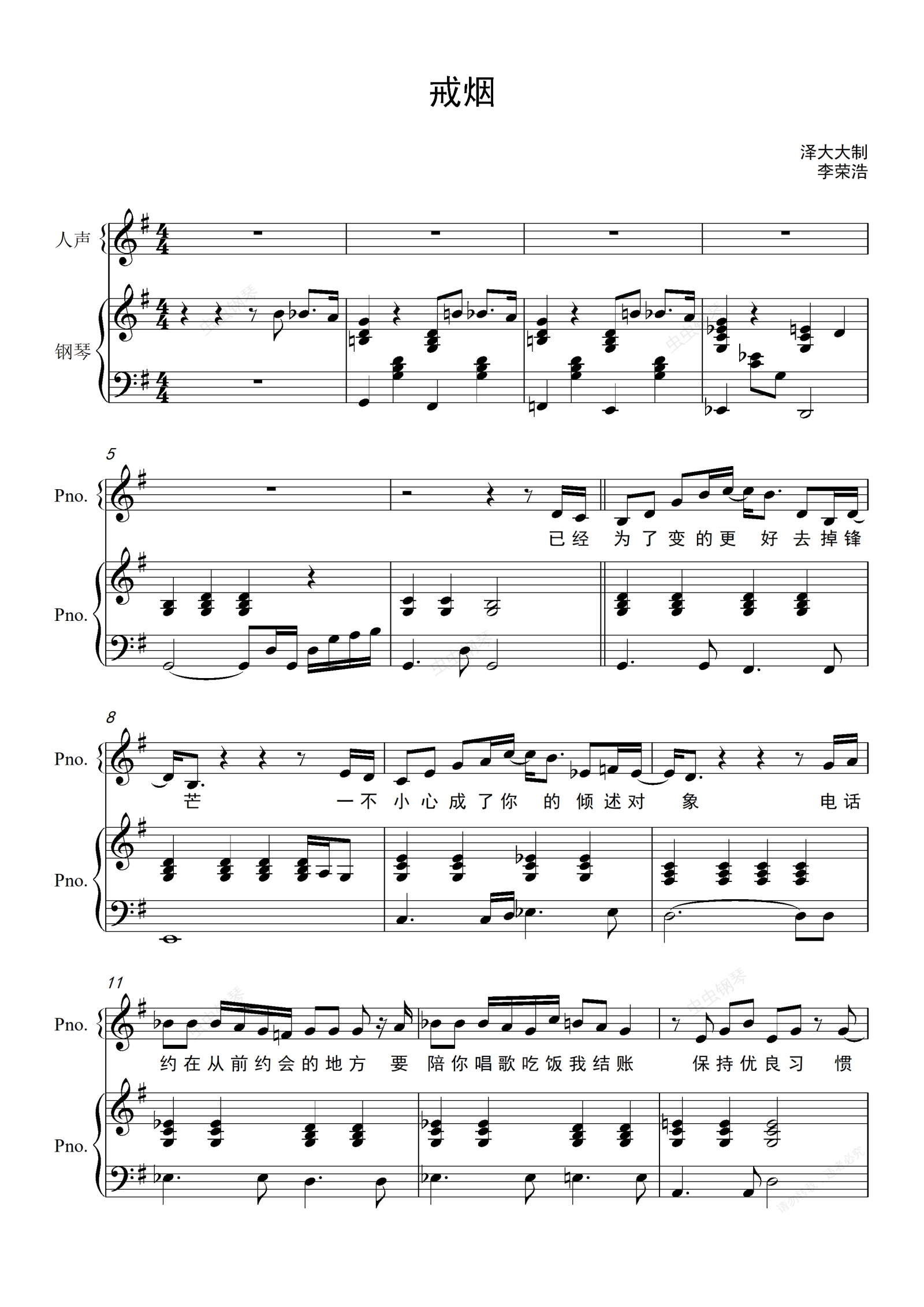钢琴谱:戒烟【精编完美弹唱附词】李荣浩