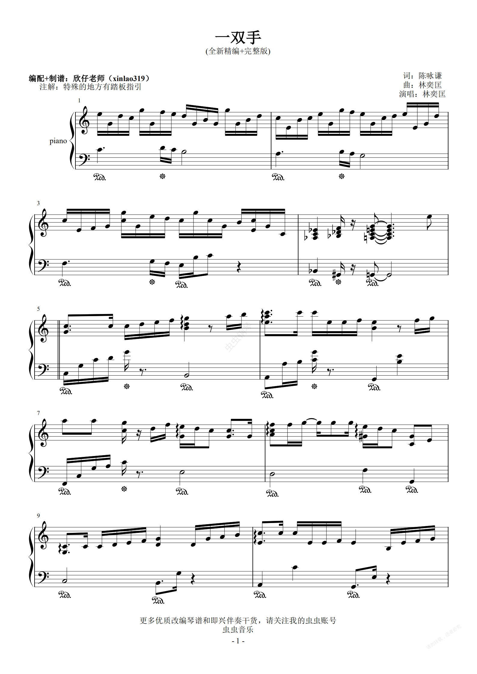 钢琴谱:C调-林奕匡《一双手》(全新精编+完整版)
