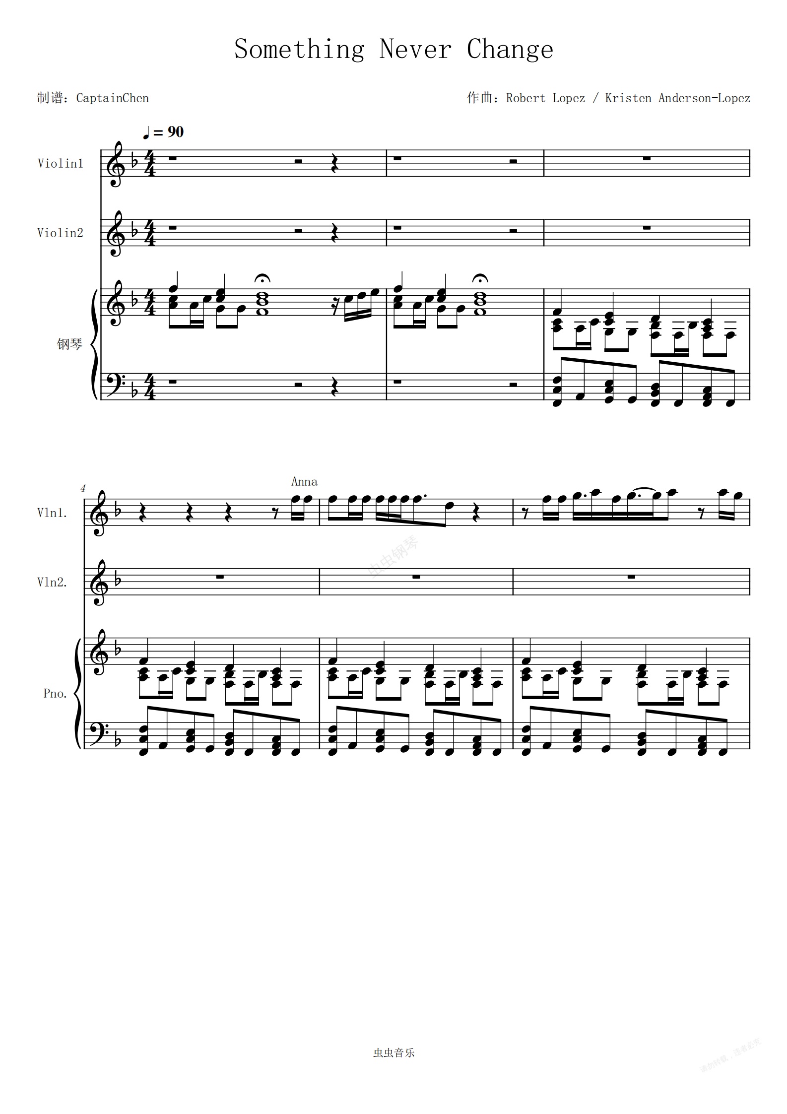 冰雪奇缘2插曲Some Never合奏谱,这个谱写的时候是两把小提琴加一台钢琴,一个小提琴旋律,另一个伴奏,钢琴也是伴奏。
