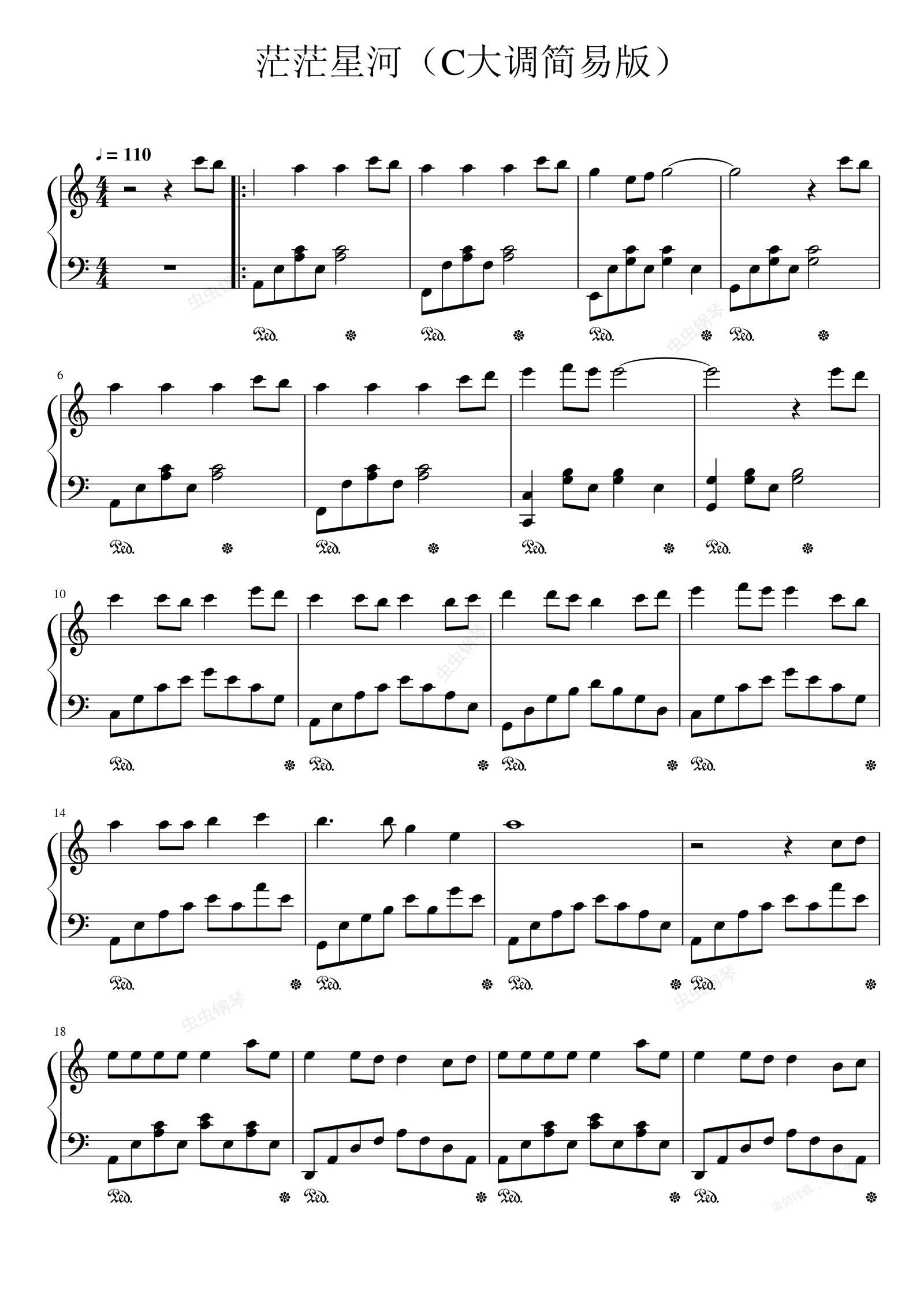 钢琴谱:茫茫星河 《玲珑》主题曲(C大调简易版)
