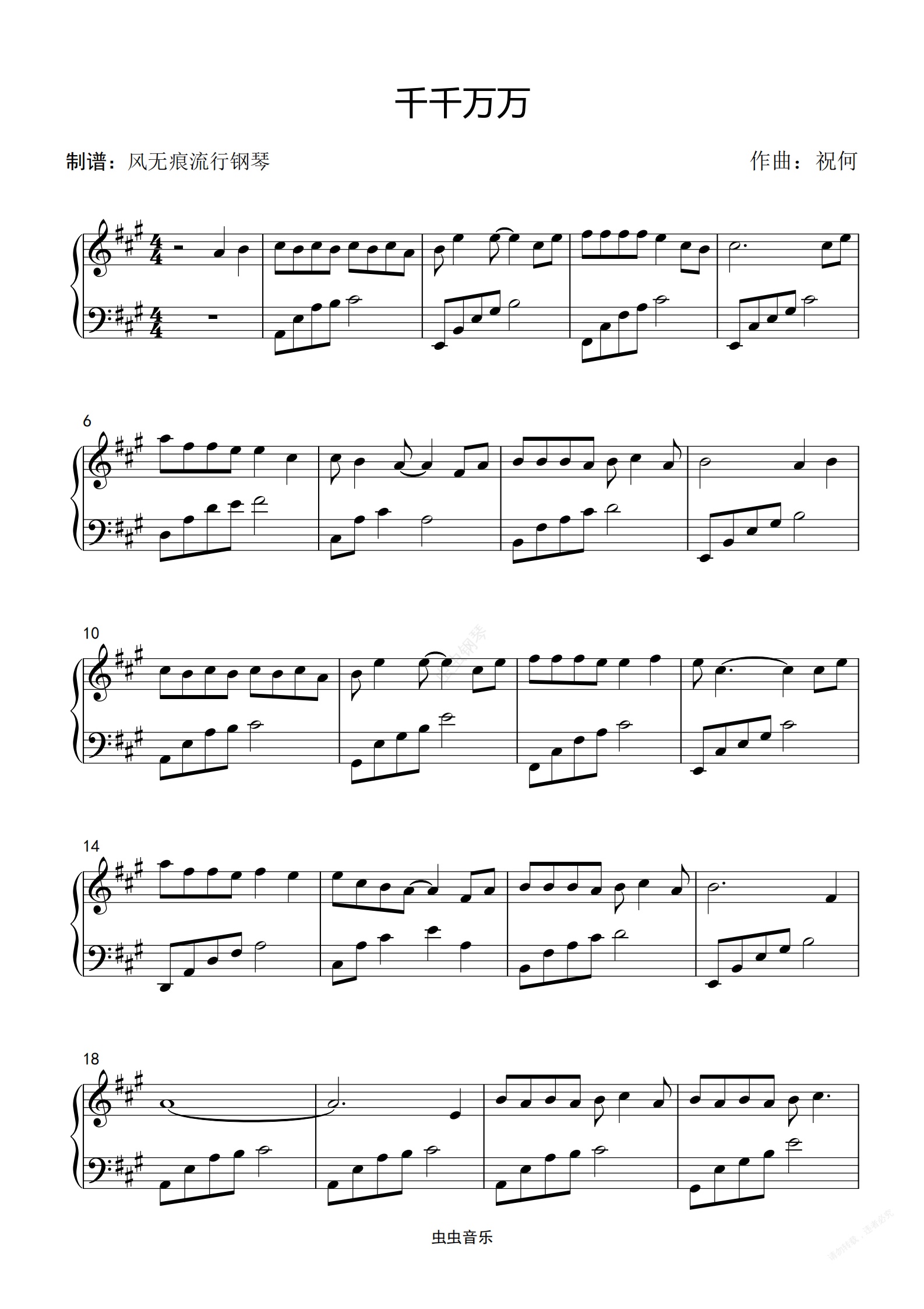 钢琴谱:[原调] 千千万万-深海鱼子酱〖简易动听〗