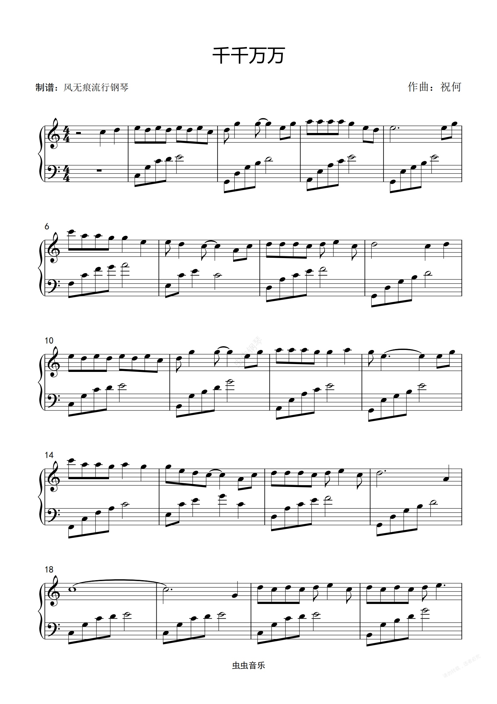 钢琴谱:[C调] 千千万万-深海鱼子酱〖简易动听〗