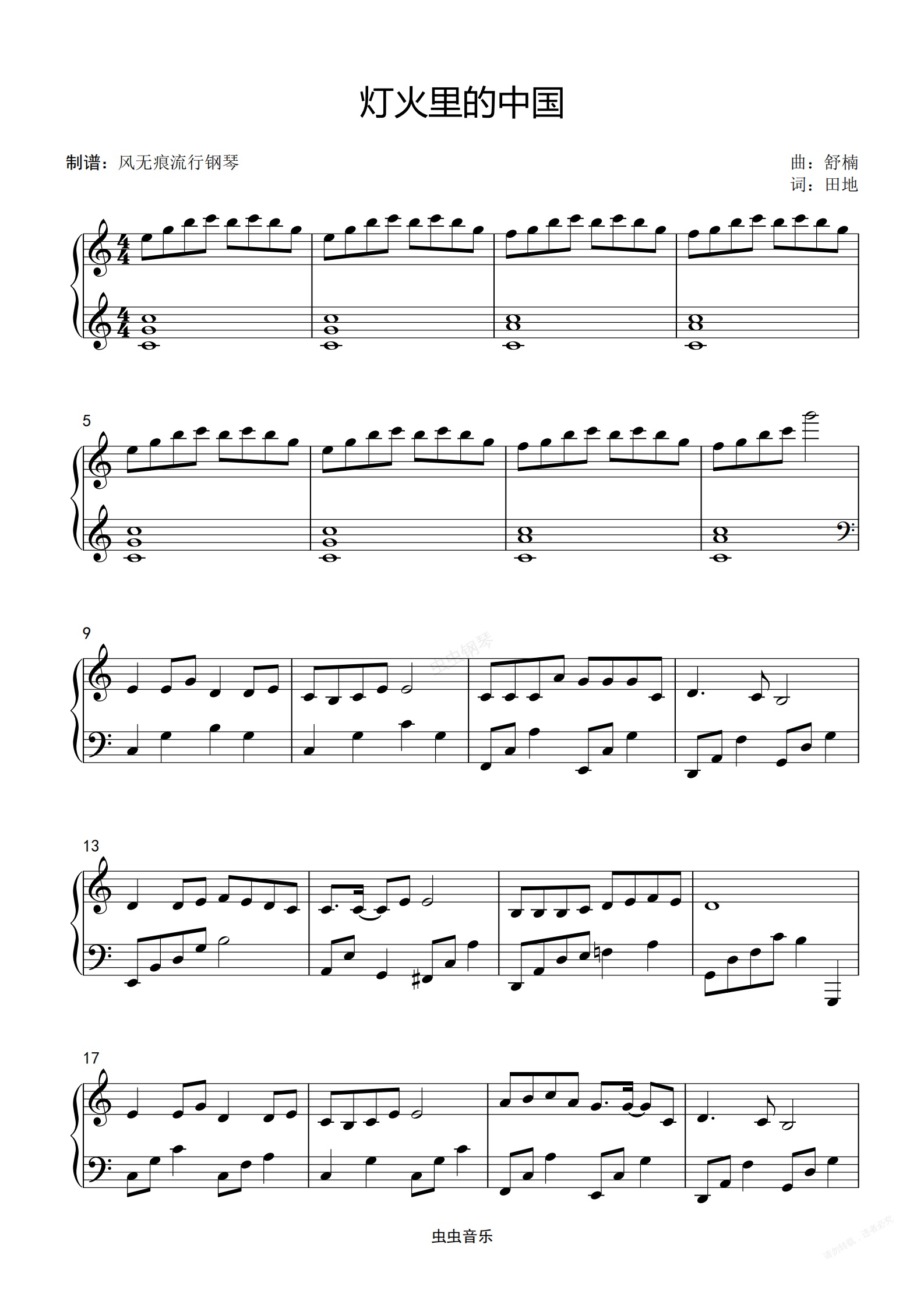 钢琴谱:灯火里的中国-周深/张也〖简易动听〗