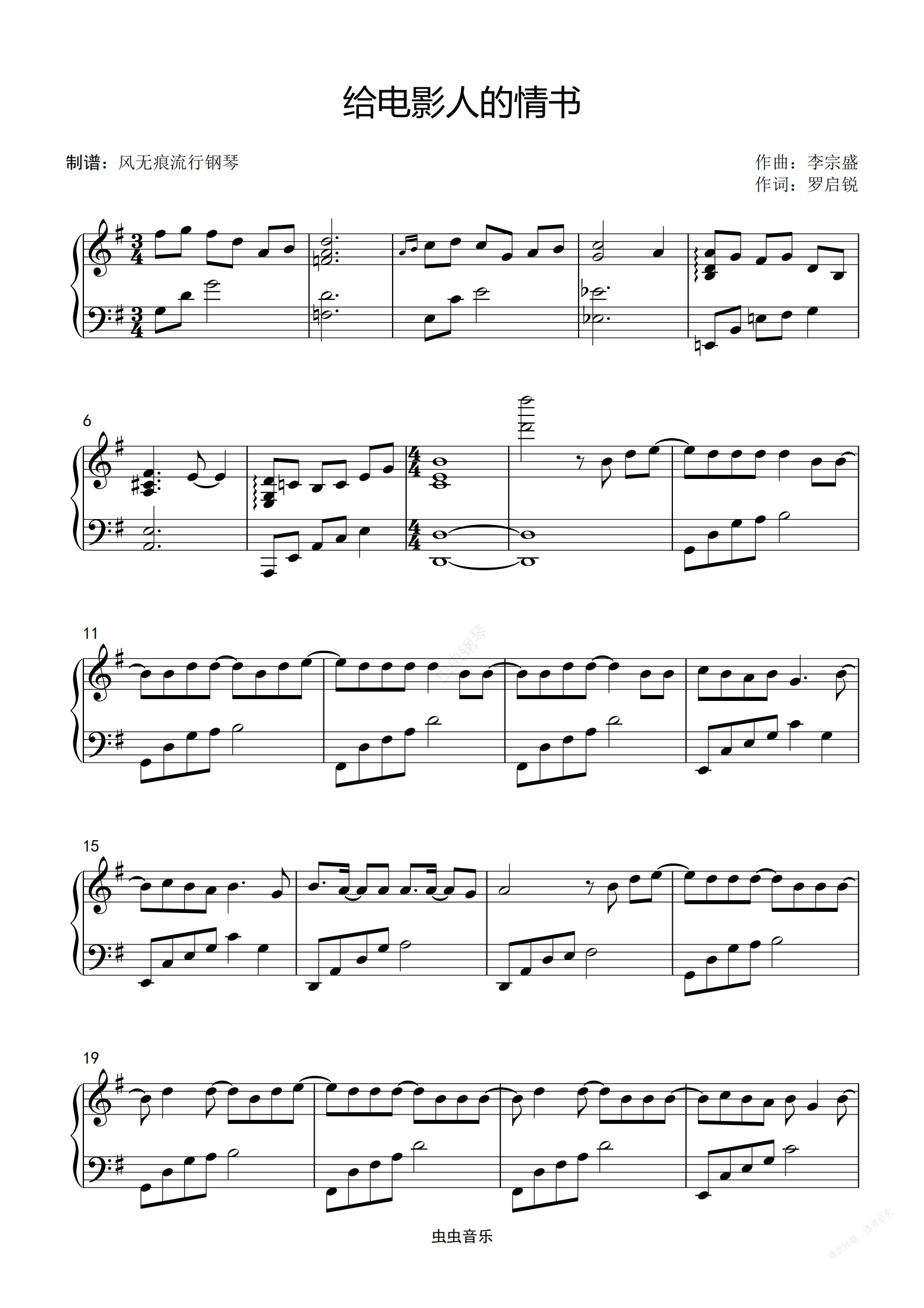 钢琴谱:给电影人的情书-单依纯〖简易动听〗