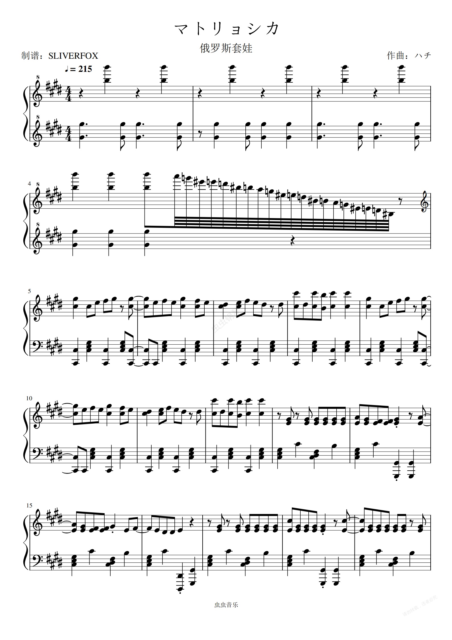 钢琴谱:《俄罗斯套娃》米津玄师 超有个性完美版(マトリョシカ)