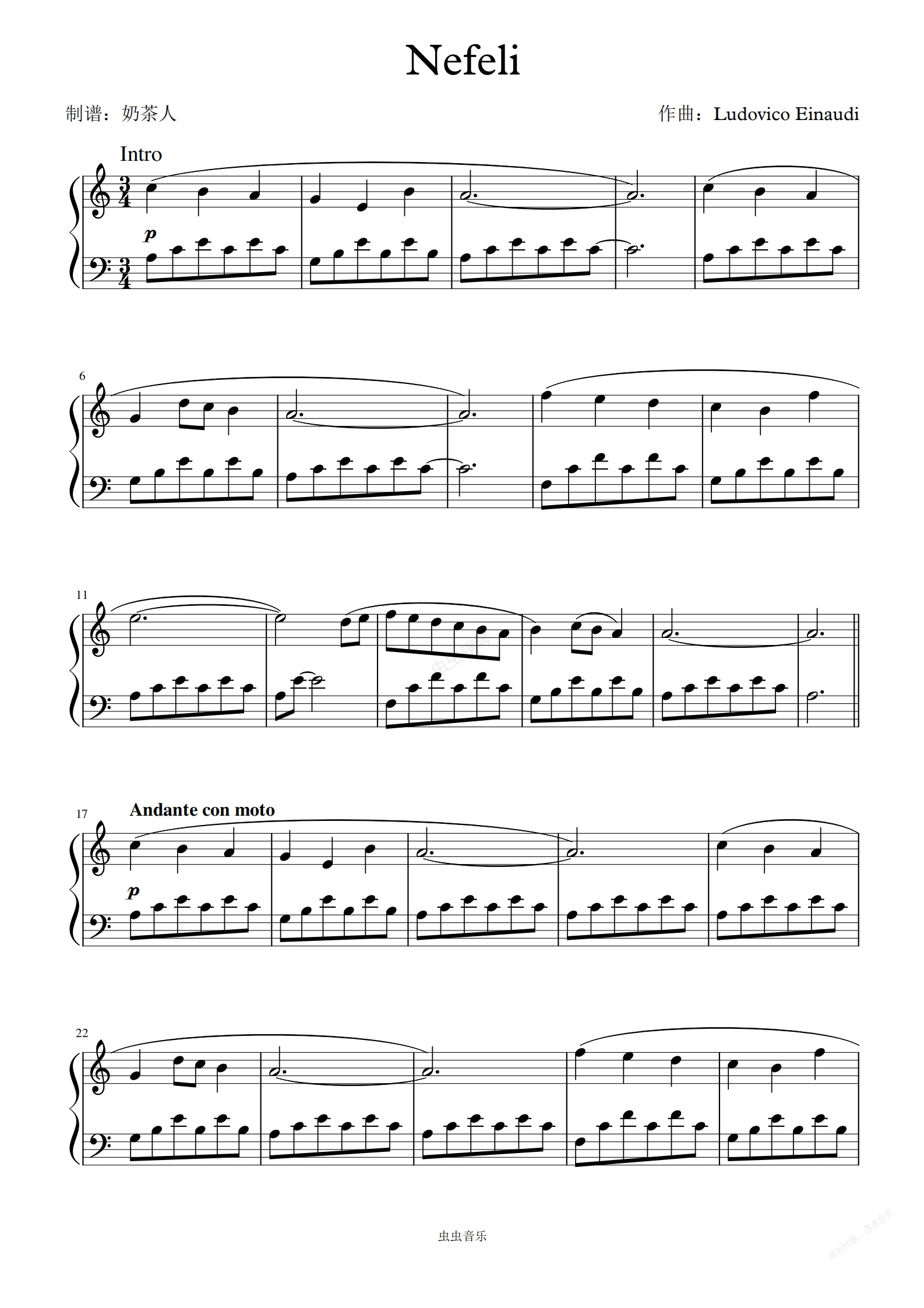钢琴谱:《Nefeli》ludovico einaudi作品 鲁多维科·艾奥迪