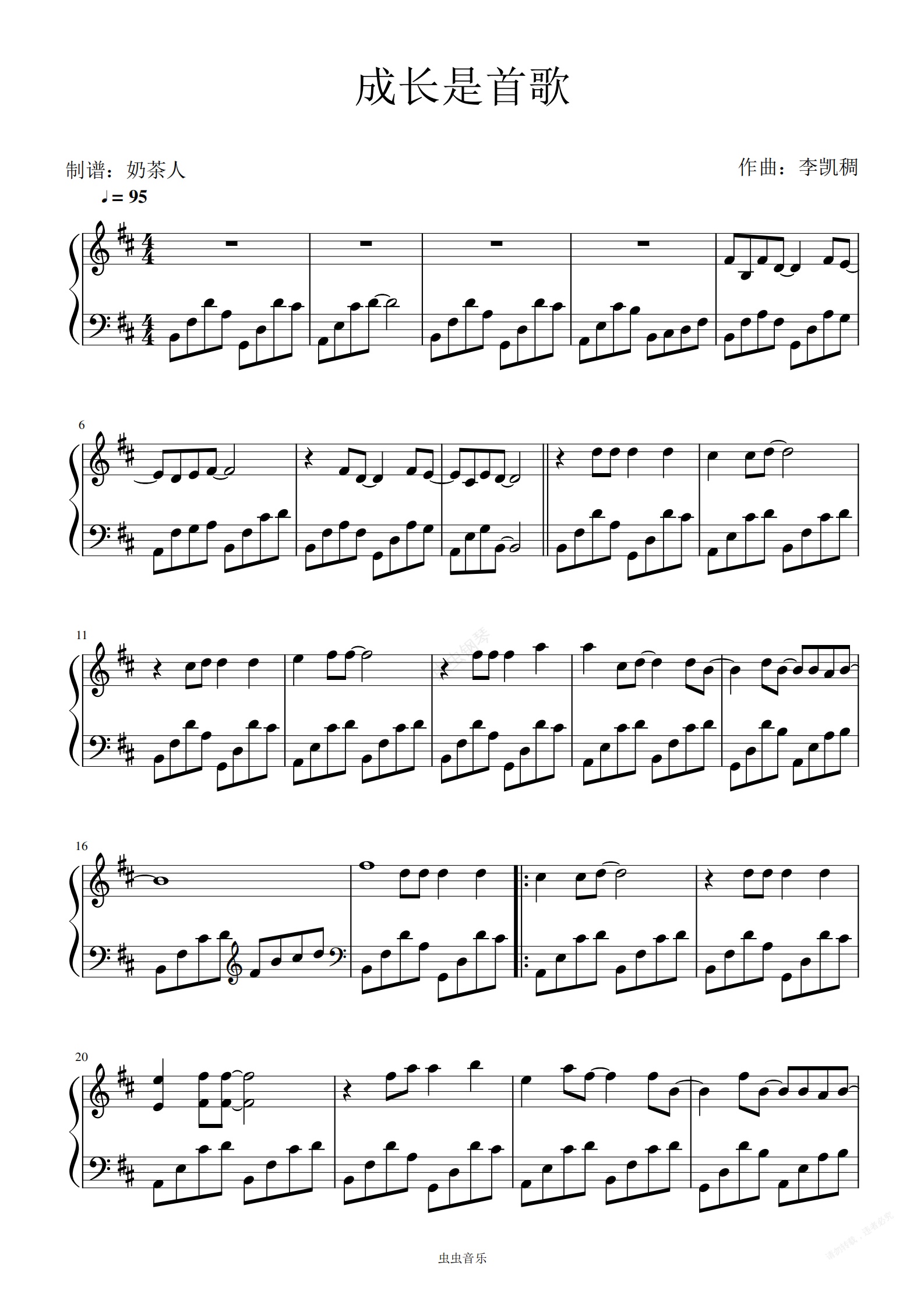 钢琴谱:《成长是首歌》 11岁歌手李昕融