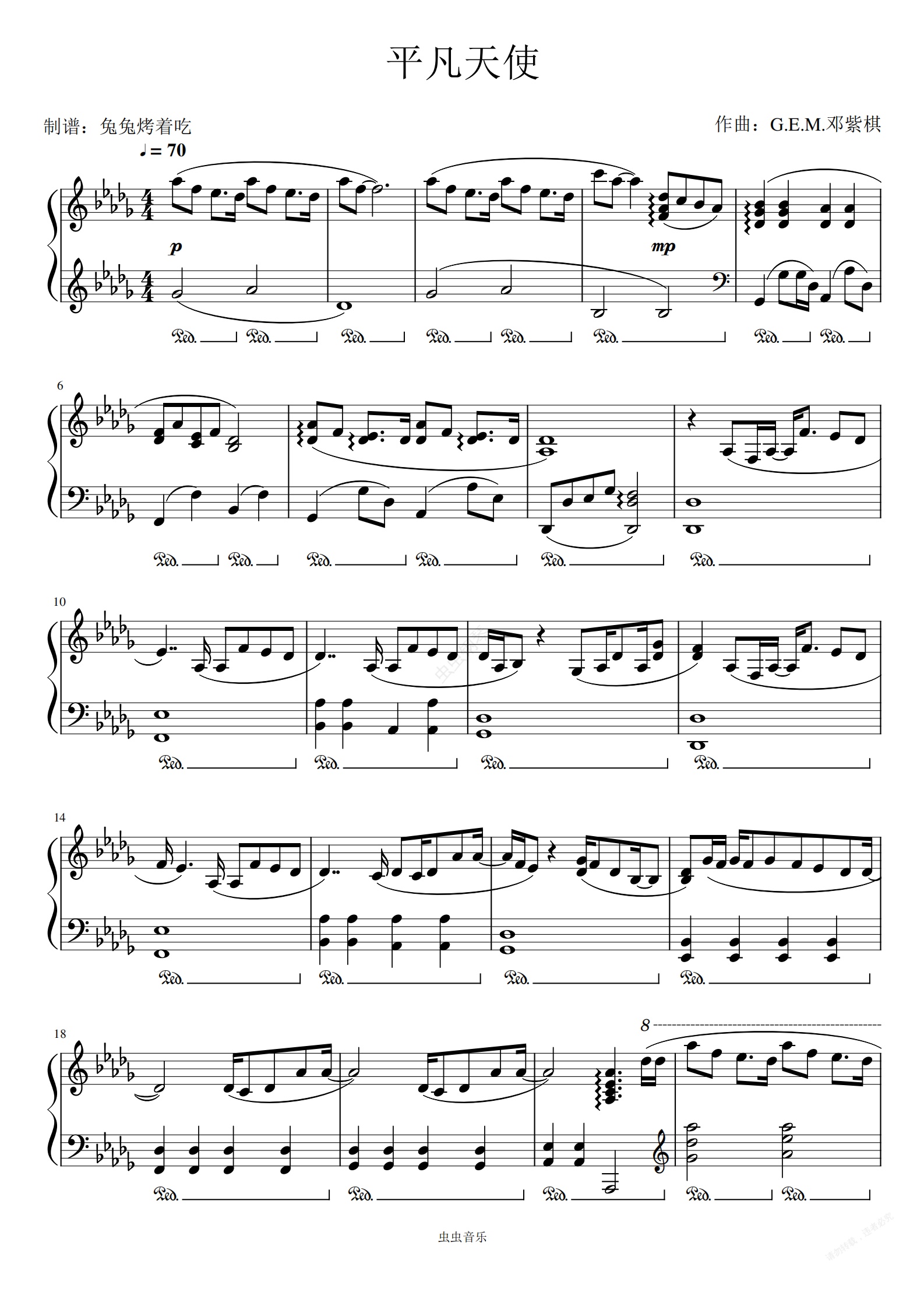 钢琴谱:《平凡天使》邓紫棋 完整版