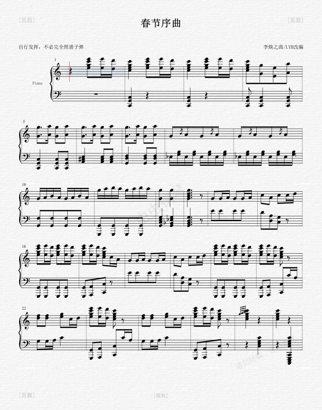 钢琴谱:春节序曲钢琴独奏版