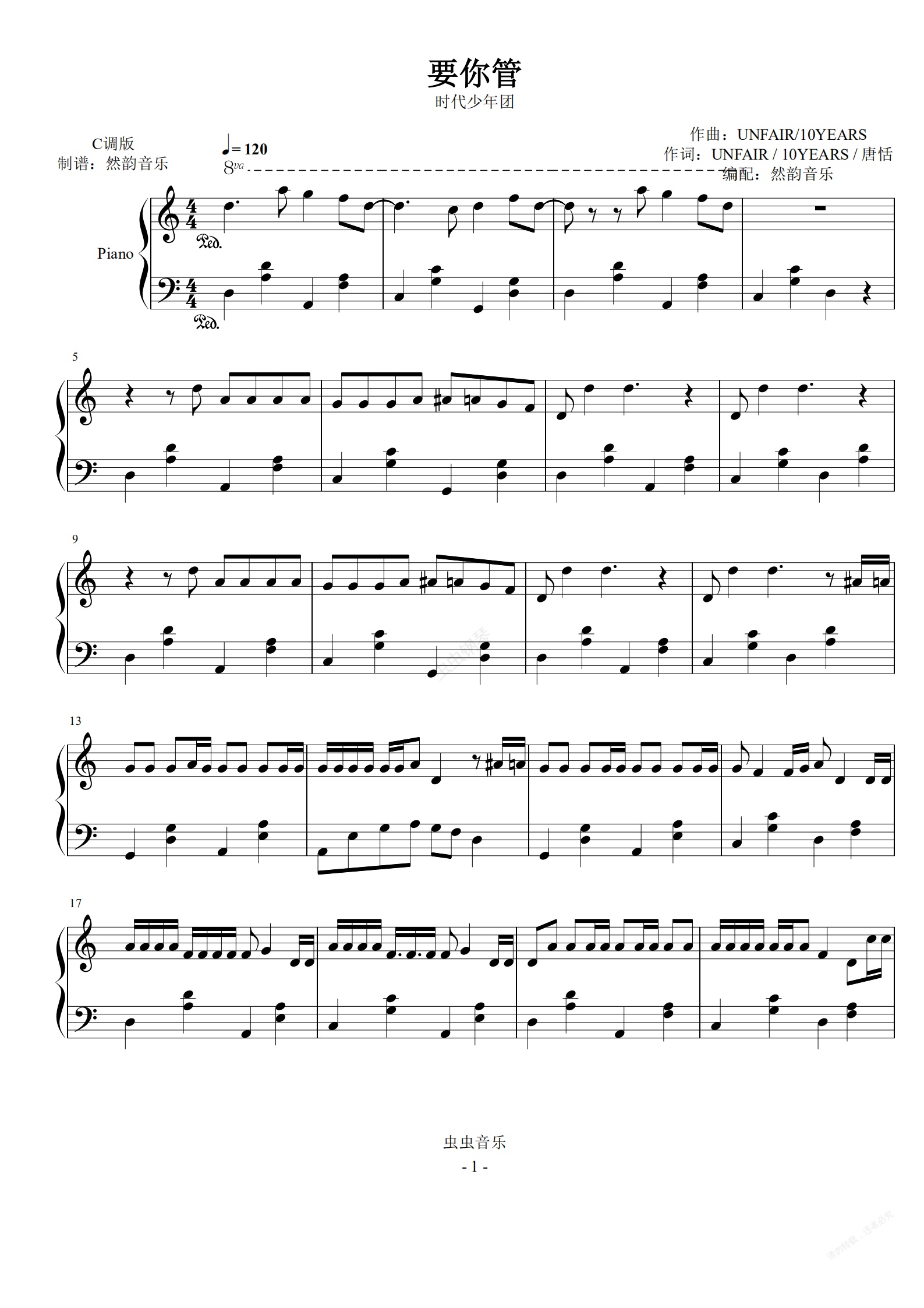 钢琴谱:【C调】要你管-TNT时代少年团 钢琴完美还原