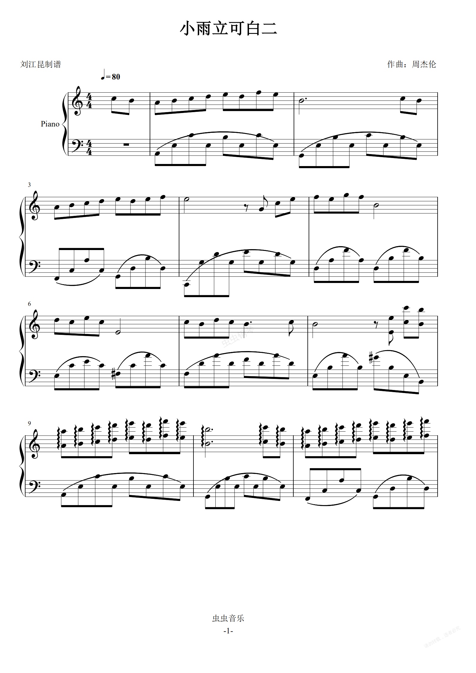 钢琴谱:小雨立可白二(选自电影《不能说的秘密》)