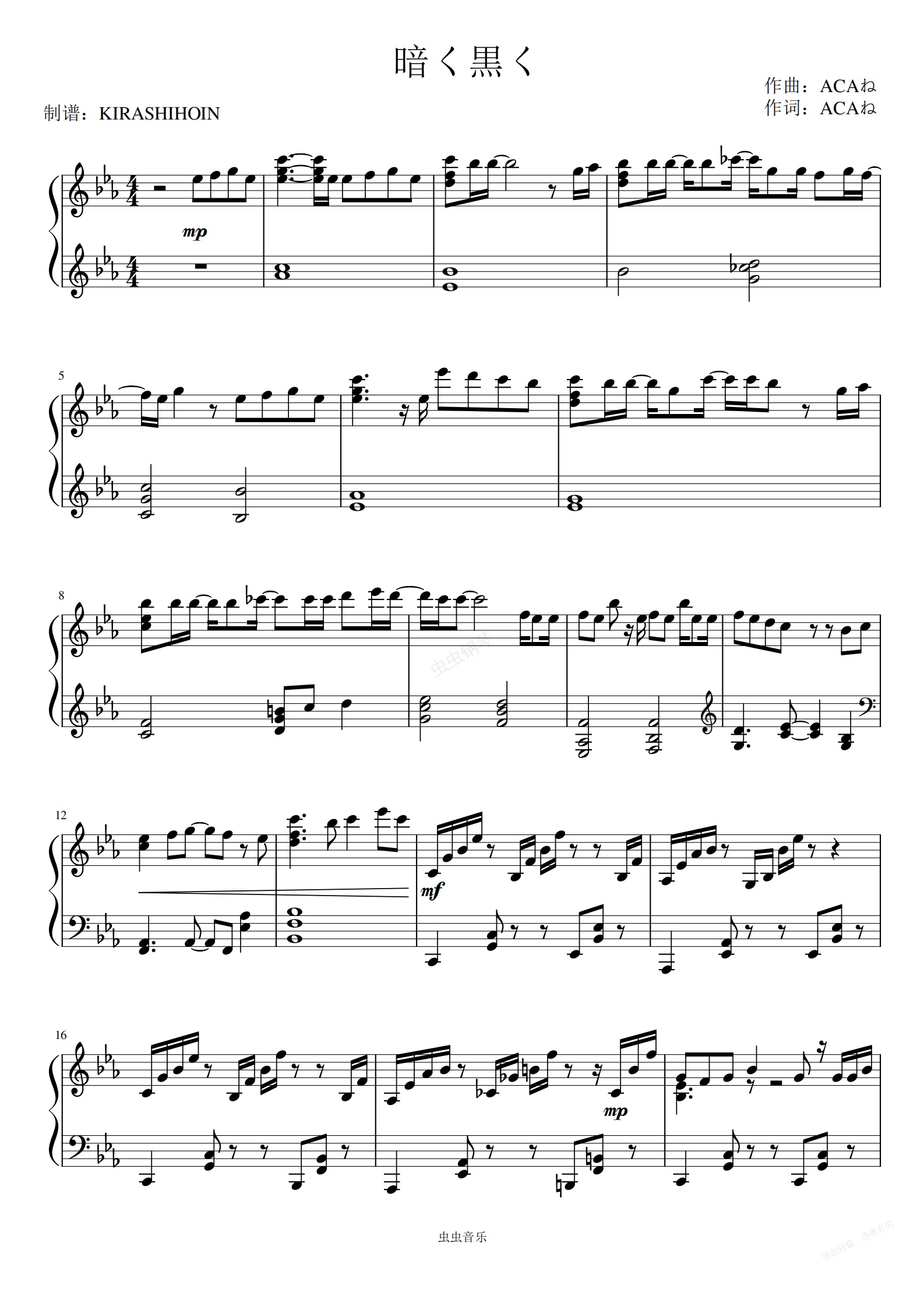 钢琴谱:暗く黒く(《三角窗外是黑夜》主题曲)