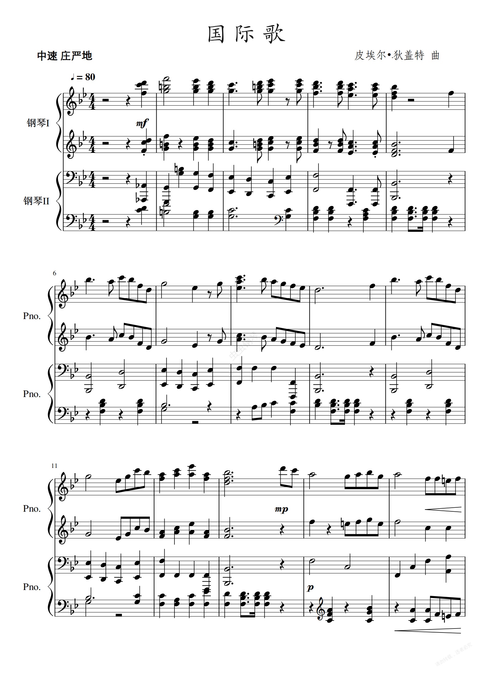 《国际歌》(L')是由欧仁·鲍狄埃在1871年作词,皮埃尔·狄盖特于1888年谱曲而成的歌曲。