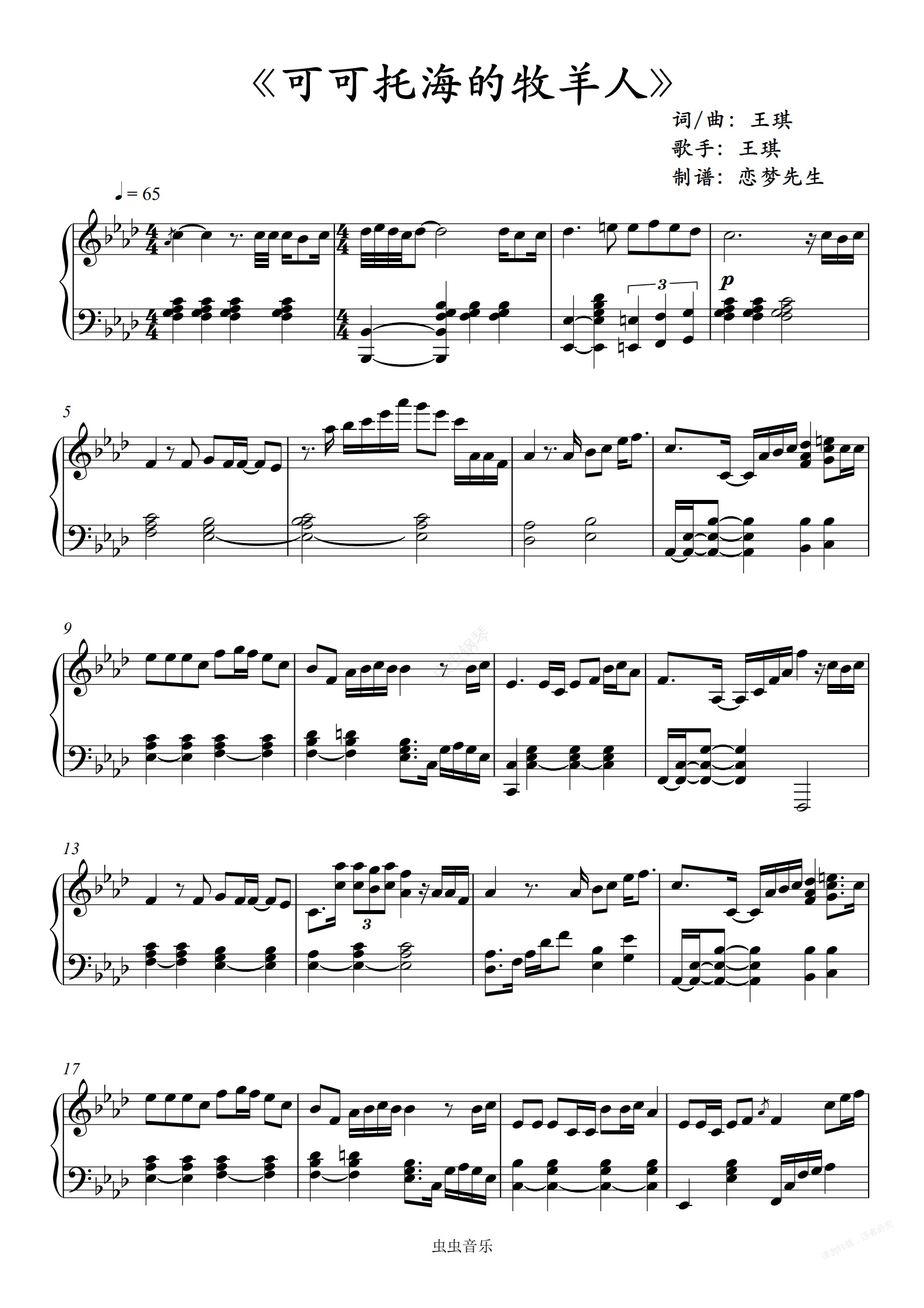 钢琴谱:《可可托海的牧羊人》