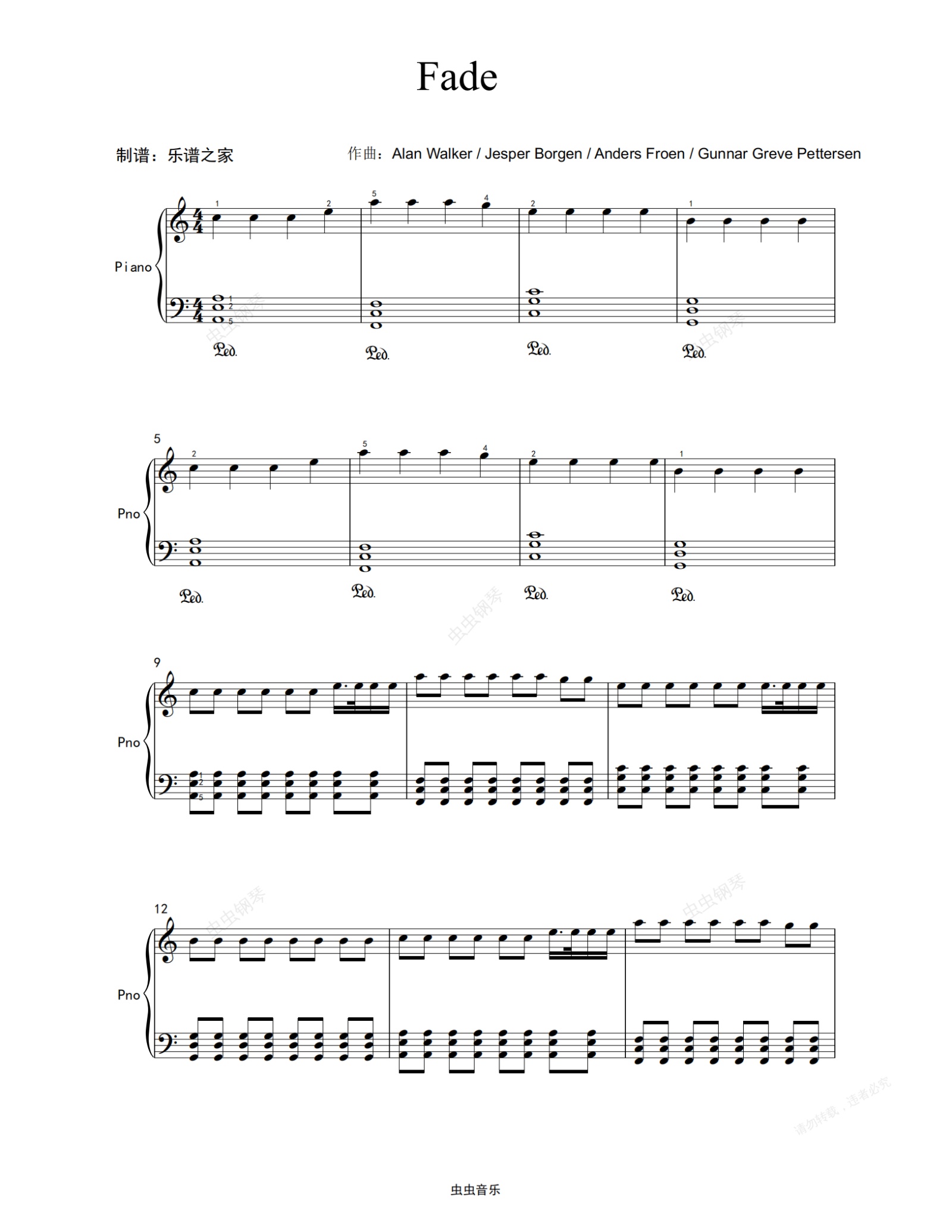 钢琴谱:Fade C大调钢琴谱 高清乐谱 送示范音频
