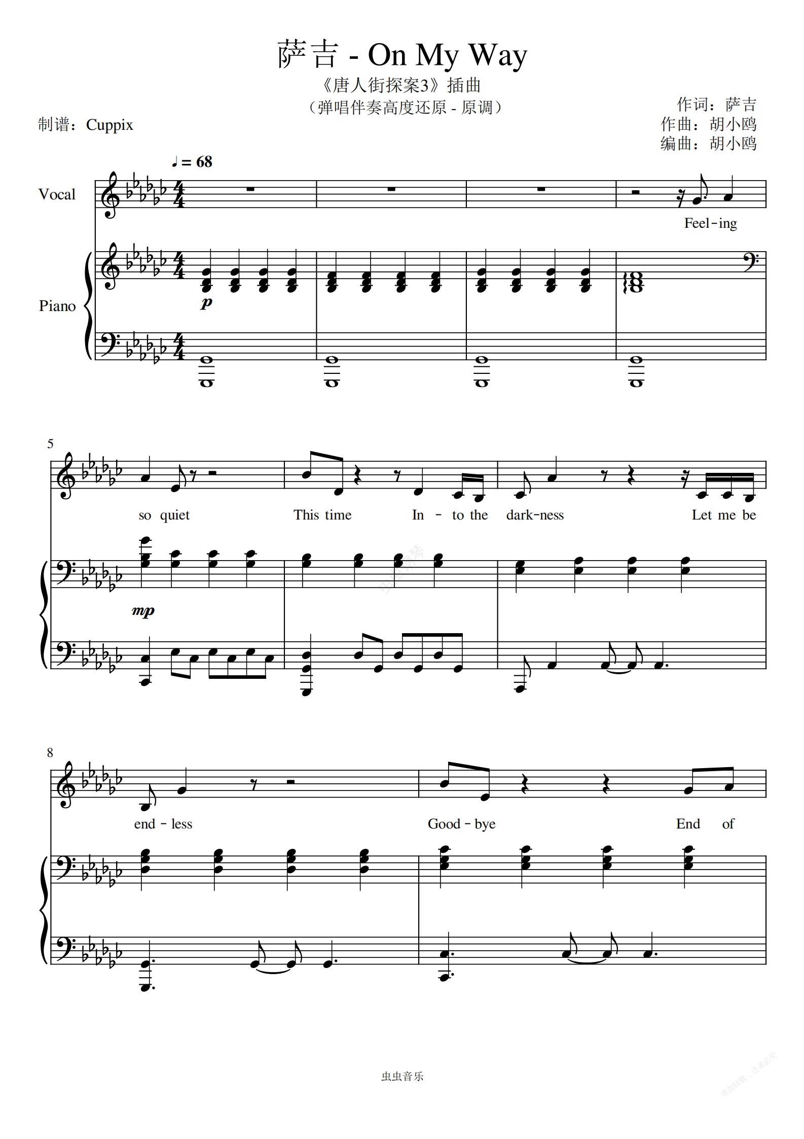 《On My Way》弹唱伴奏附词-原调(萨吉,唐人街探案3)