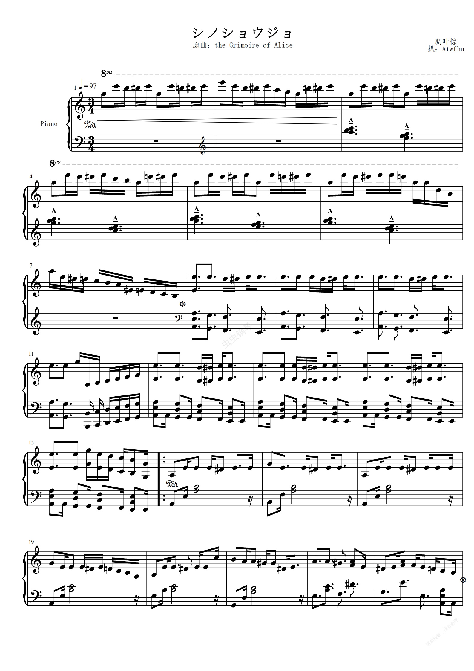 钢琴谱:【凋叶棕】シノショウジョ {the Grimoire of Alice} -东方project