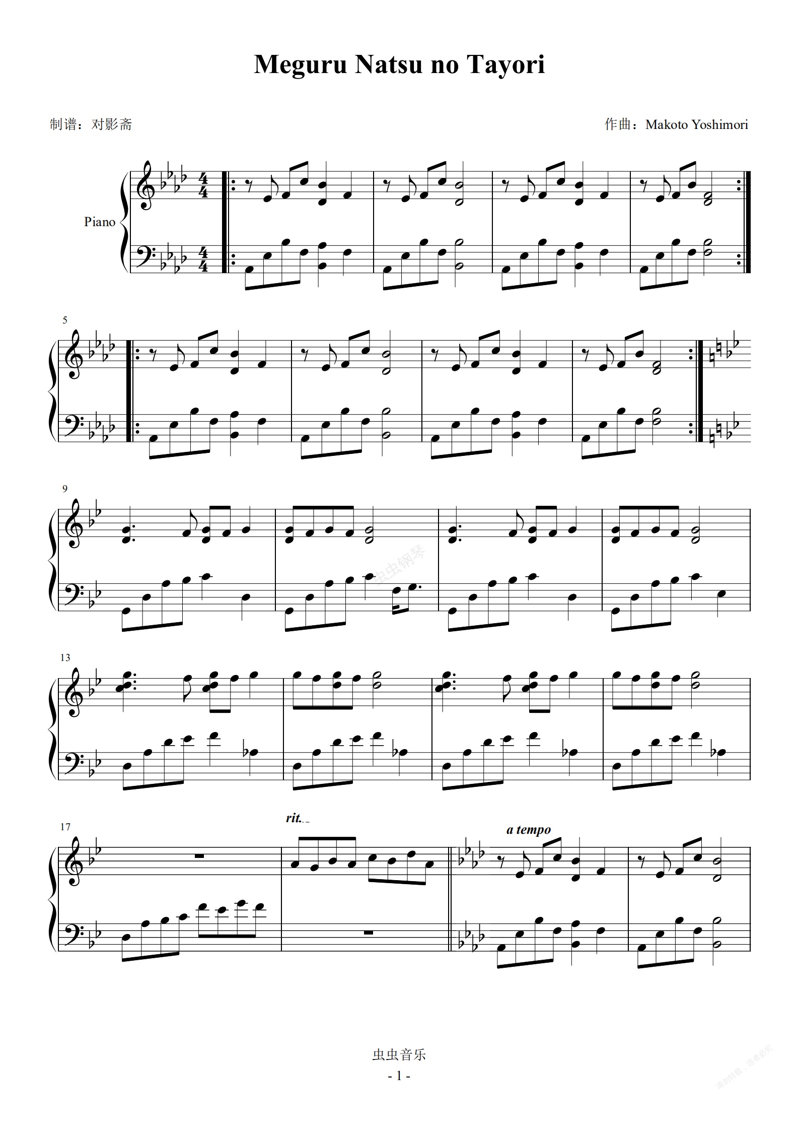 钢琴谱:Meguru Natsu no Tayori(夏目友人帐ost)