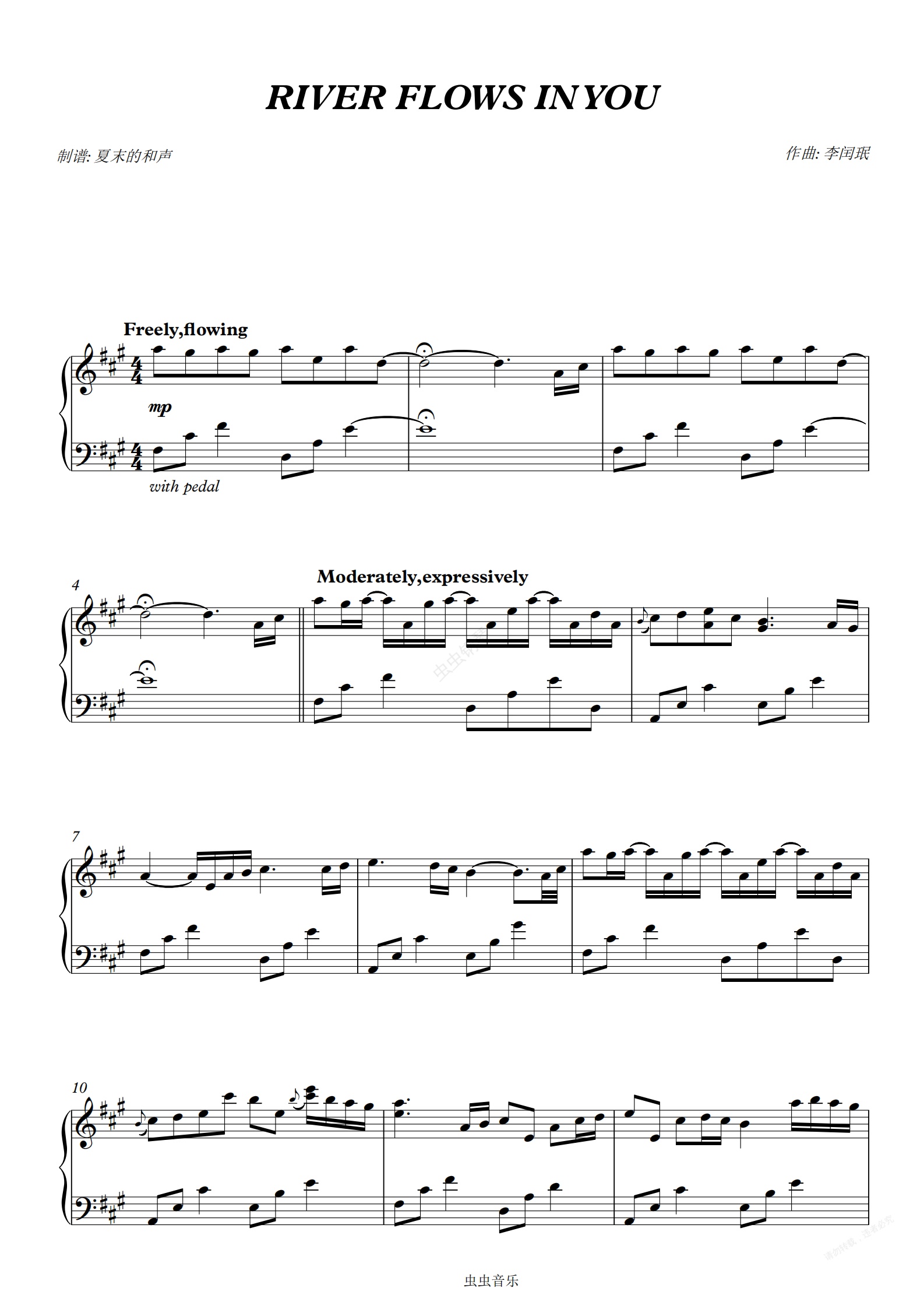 钢琴谱:River Flows in You(你的心河)- 韩国原版 - 李闰珉