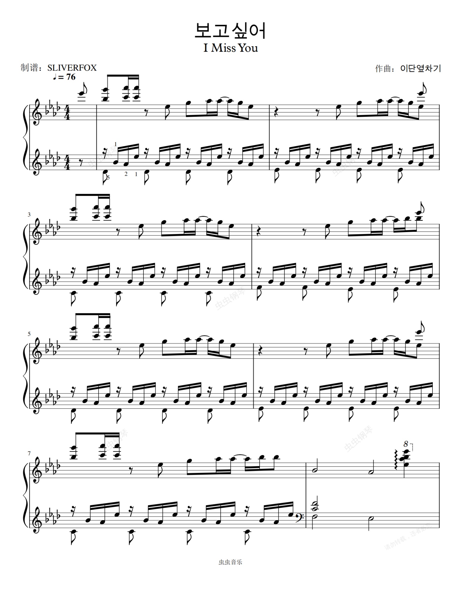 钢琴谱:《보고싶어》(我想你) 韩女团Girl's Day