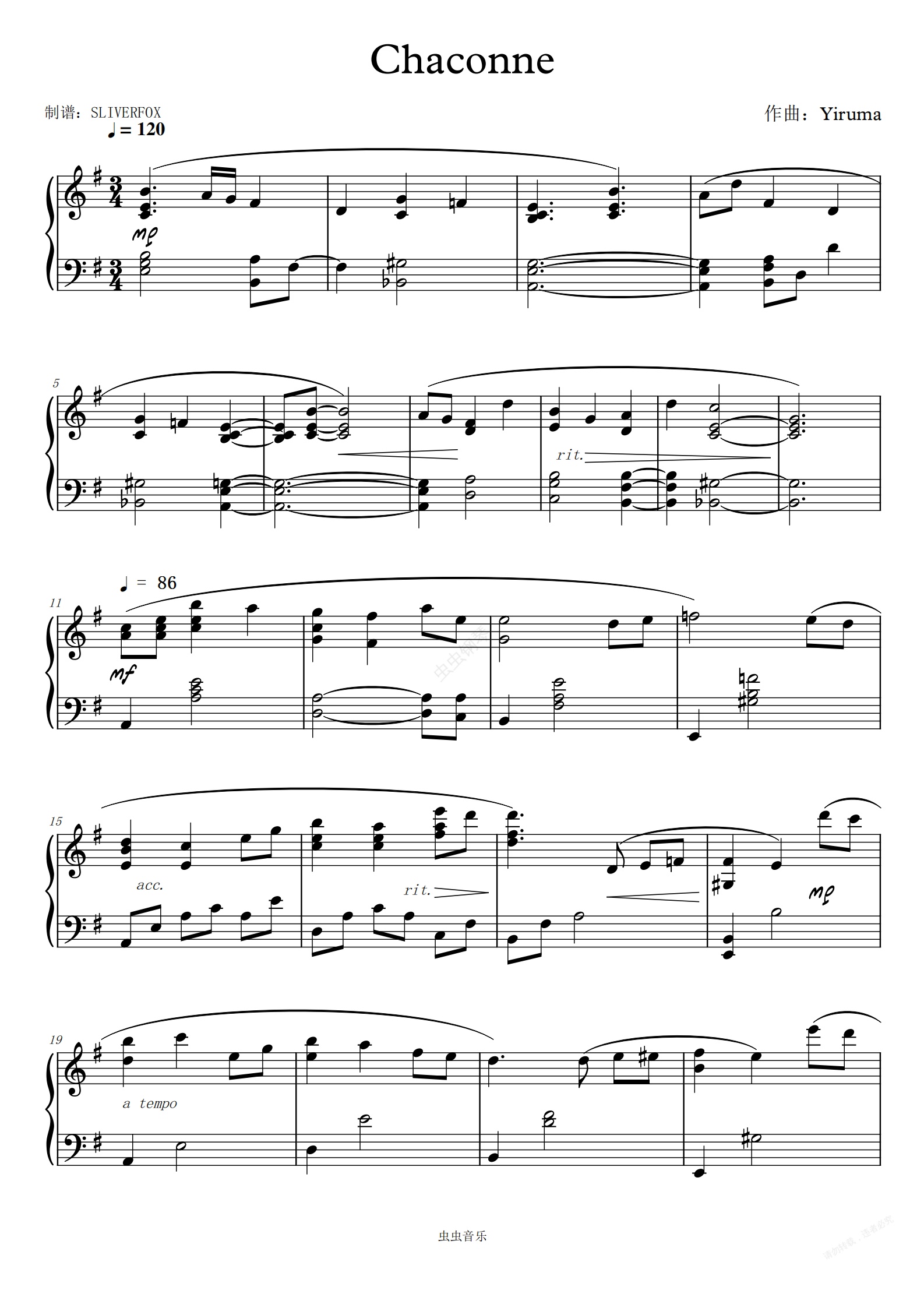 钢琴谱:《Chaconne》(夏康舞) 的另一版 Yiruma李闰珉