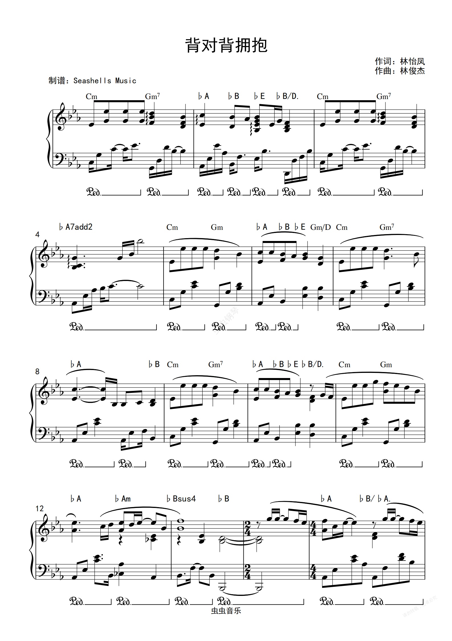 钢琴谱:林俊杰-《背对背拥抱》精编钢琴独奏