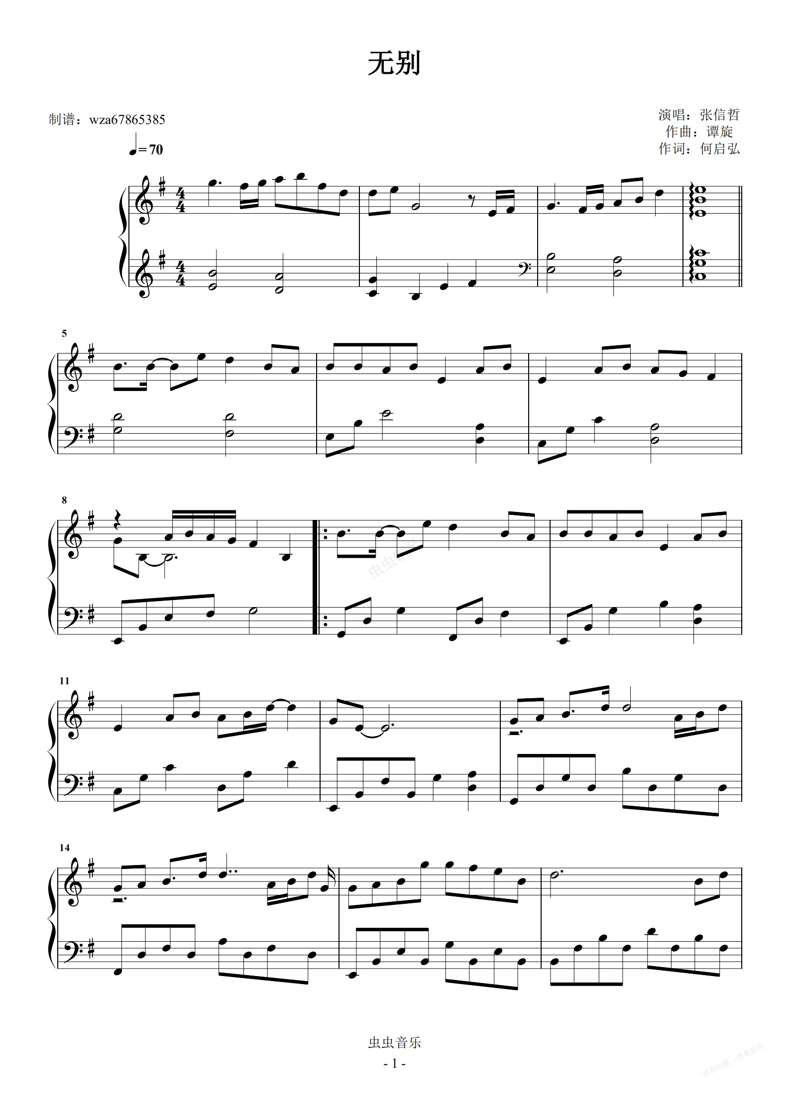 钢琴谱:无别