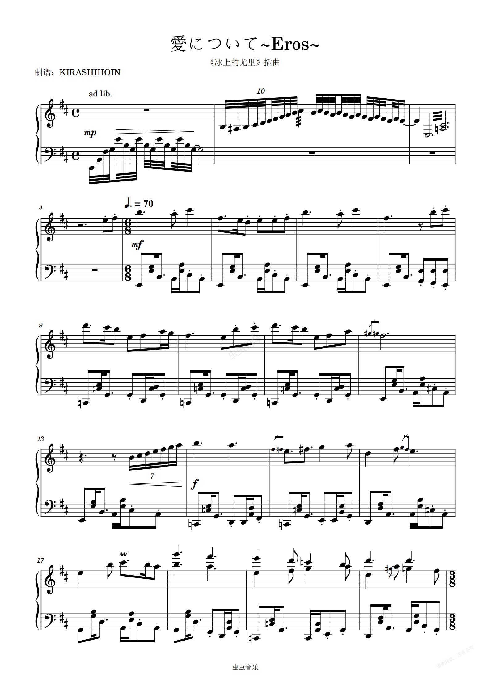钢琴谱:关于爱~Eros~/愛について~Eros~(《冰上的尤里》插曲)